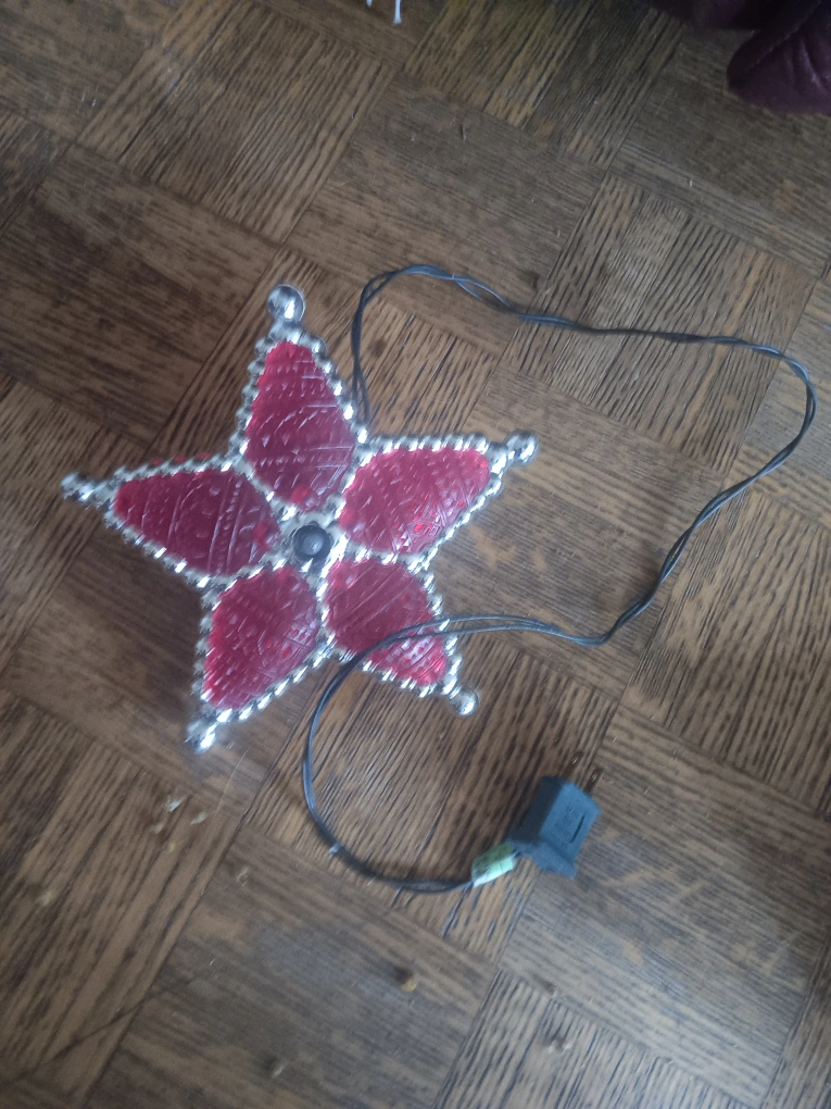 Add a touch of vintage charm to your Christmas tree with this red star tree topper! It's in good condition and ready to light up your holidays 647-203-0411
