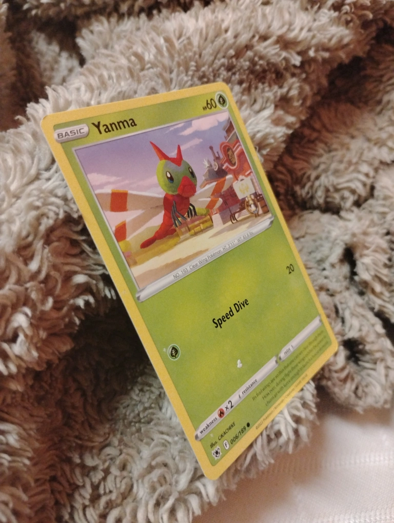 Selling a Yanma Pokémon card! It's a basic card with 60 HP. It features the 'Speed Dive' attack. The card is illustrated by OKACHEKE.