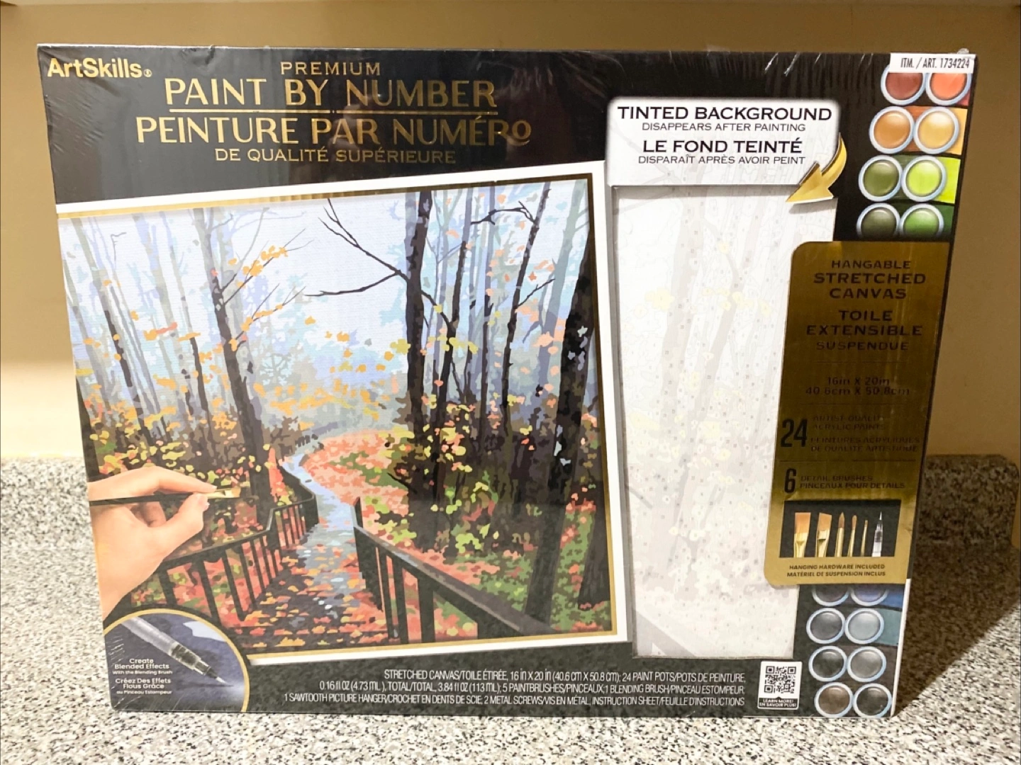 Hey there! I'm selling a brand new ArtSkills Premium Paint by Number kit. It includes a stretched canvas (16 in x 20 in / 40.6 cm x 50.8 cm), 24 paint pots, 2 paint brushes, and hanging hardware. It's a fun and relaxing activity for anyone who enjoys painting! (Pickup in Chinguacousy and Remembrance)