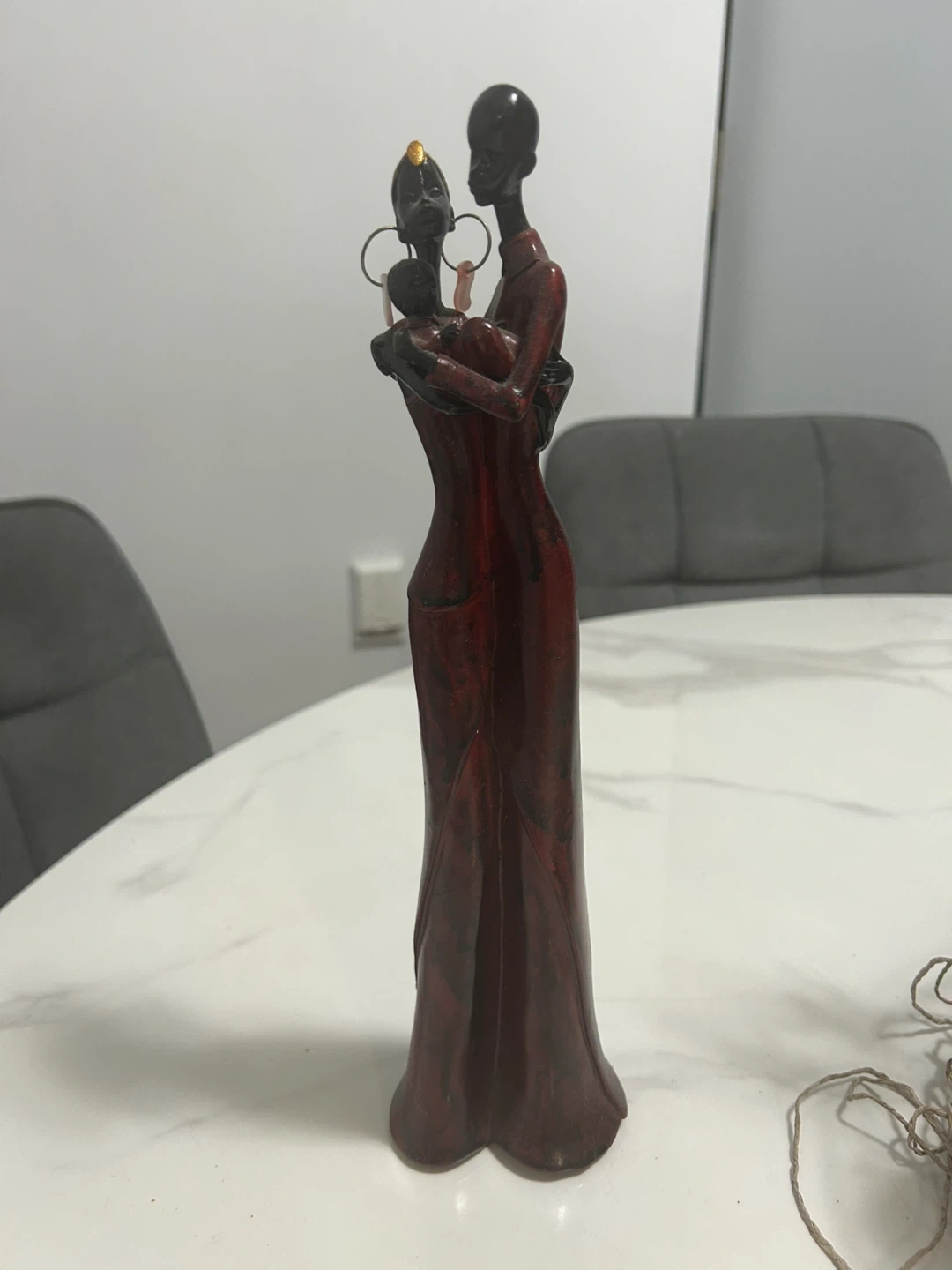 This is a beautiful African family statue. It would look great on a shelf or table.