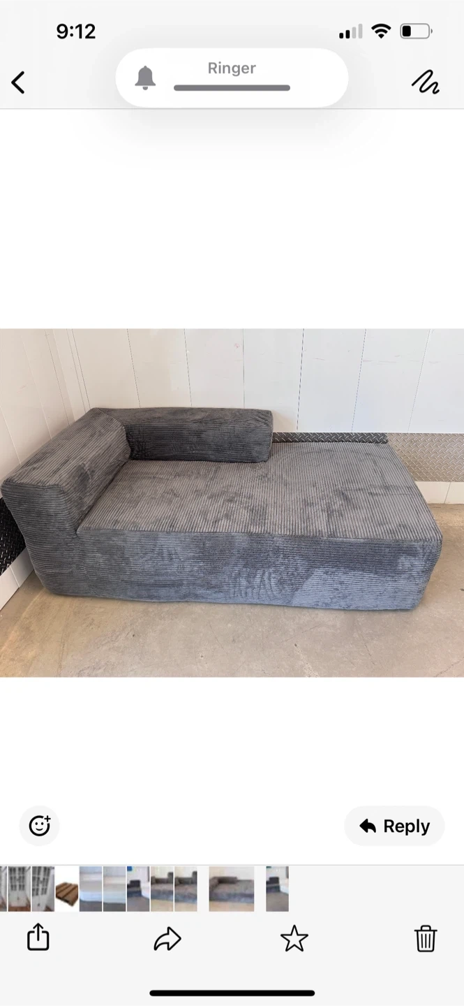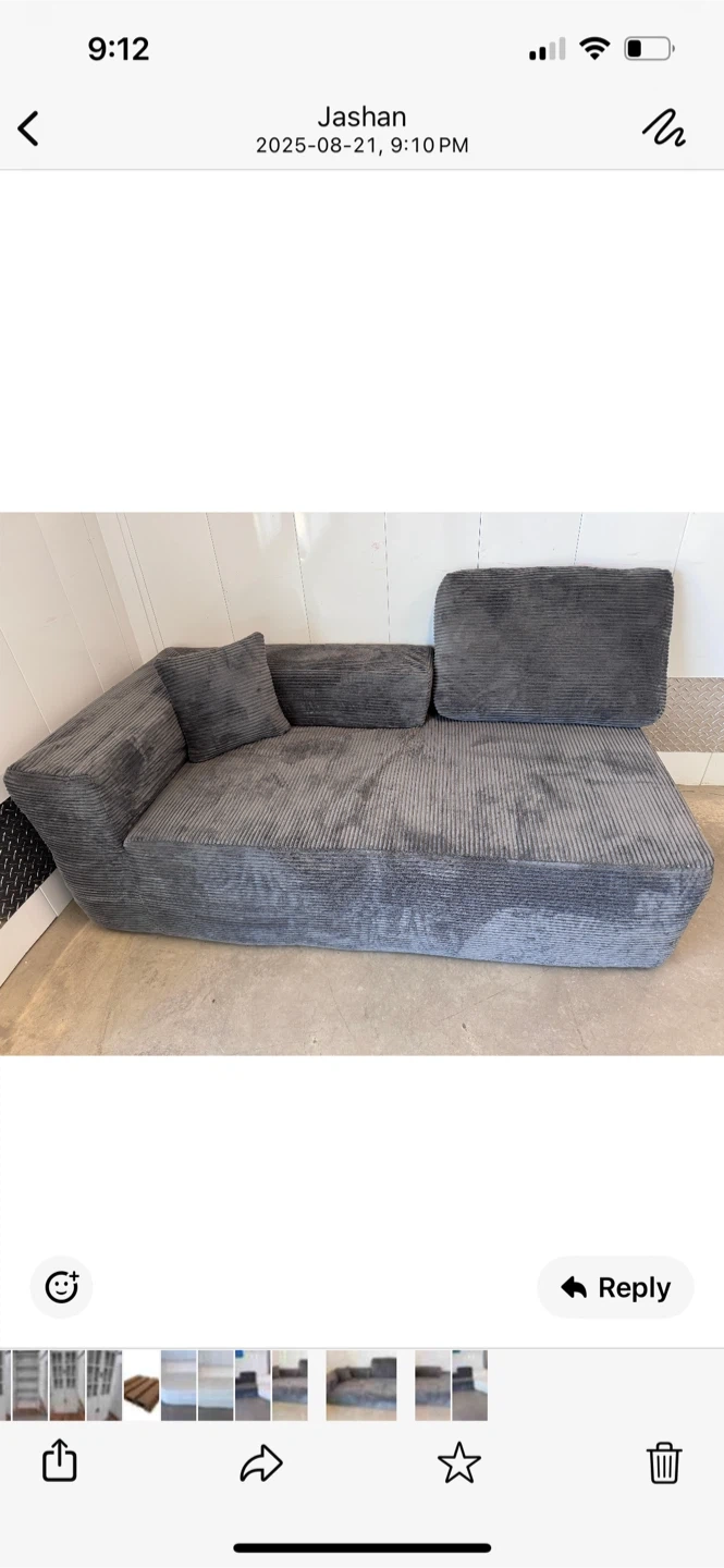 Selling a cozy grey corduroy sectional sofa. It's in great shape and would be perfect for a living room or den. It comes with a matching pillow. This sectional is very comfortable and stylish, adding a touch of modern flair to any space
