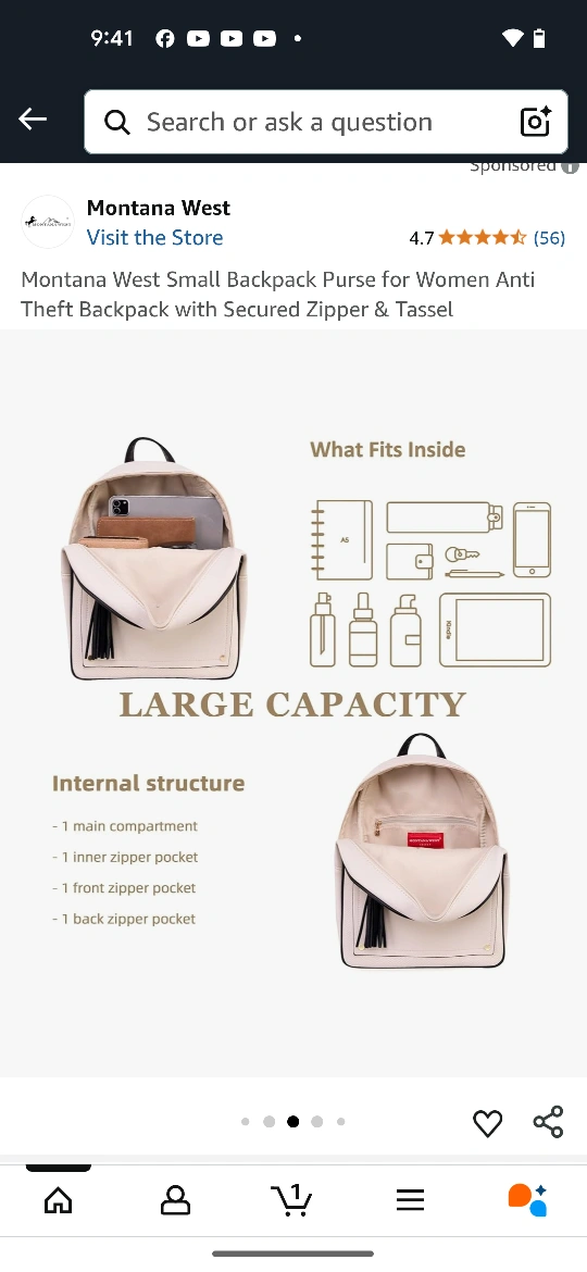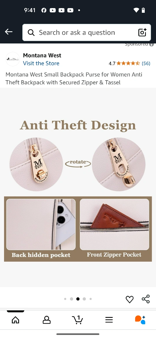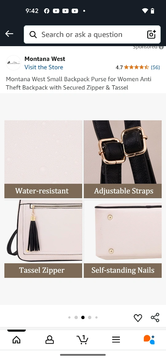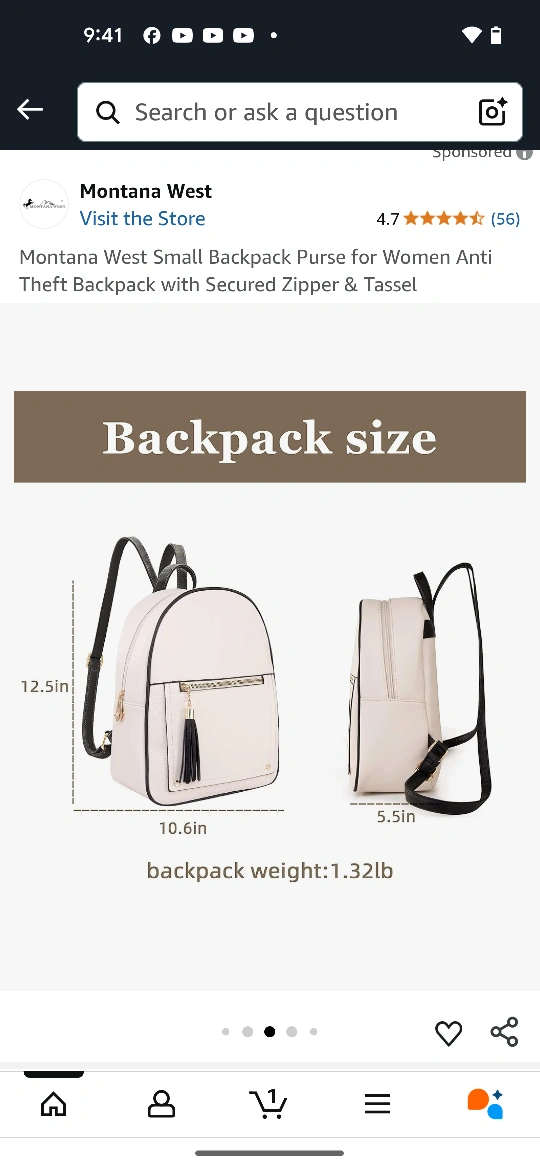 Looking to sell a Montana West small backpack purse! It's designed with anti-theft features like a secured zipper, and has a cute tassel. The backpack has a back hidden pocket and a front zipper pocket. It's got a large capacity with: - 1 main compartment - 1 inner zipper pocket - 1 front zipper pocket - 1 back zipper pocket Dimensions are 12.5in x 10.6in x 5.5in, and it weighs 1.32lb