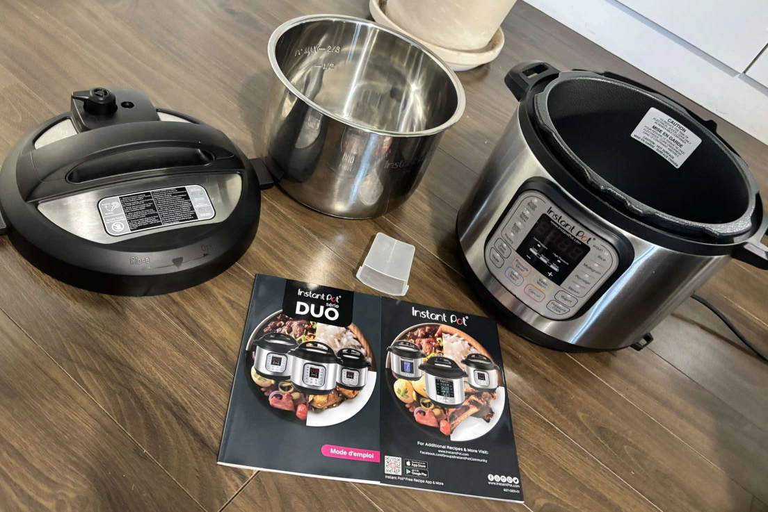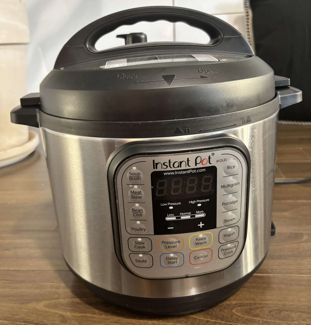 Selling an Instant Pot Duo electric pressure cooker! It's in great shape and comes with all the components you see in the pictures, including the inner pot and the instruction manual. This model has multiple functions like pressure cooking, slow cooking, steaming, and more! Perfect for making soups, stews, rice, yogurt, and other delicious meals