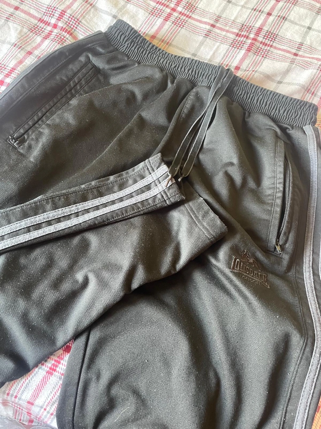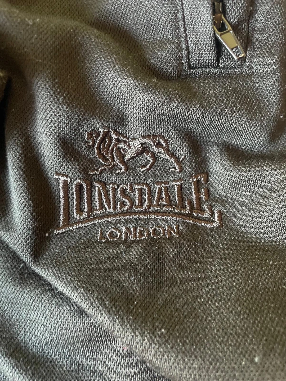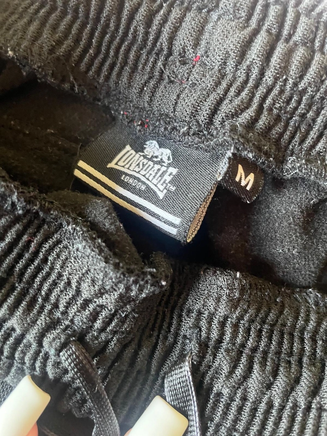 Selling a pair of Lonsdale London track pants in black! These are a size medium and feature the iconic Lonsdale logo. They're comfy and perfect for lounging or hitting the gym!