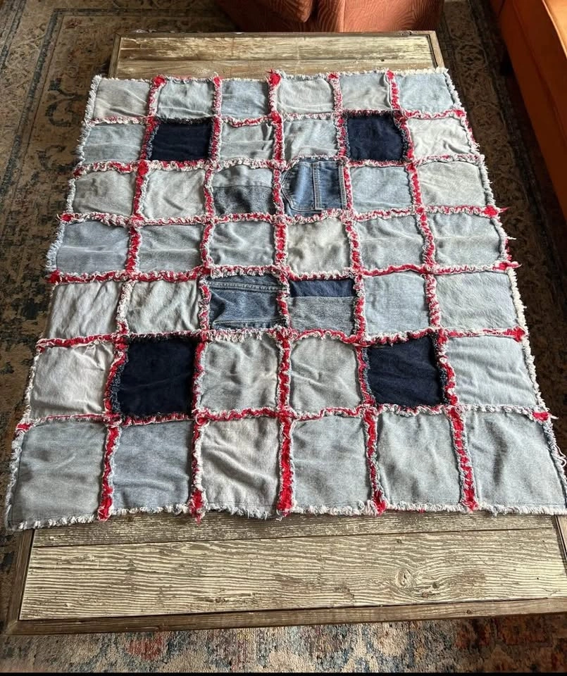 $125 obo for 2 blankets. Pick up near Southcentre mall, if this ad is up, it is available. Price is for 2 blankets. Get cozy with these vintage hand-made denim patchwork blankets, perfect for a nature-inspired and bohemian style. Made with a warm cotton blend insulation, it is ideal for curling up by the campfire, in a cabin, or at the beach house. This small single-sized blanket measures 40 inches in length and 35 inches in width, with a drop length of 1m/100cm. Featuring a unique American flag design, these quilted blue and red blankets are a true statement piece that will add character to any room. It is easy to care for, with machine wash and tumble dry instructions. Personalize your space with this one-of-a-kind piece from the Granny Core product line. Hand made one of a kind with cell phone pockets. Price includes Two blankets in the set.