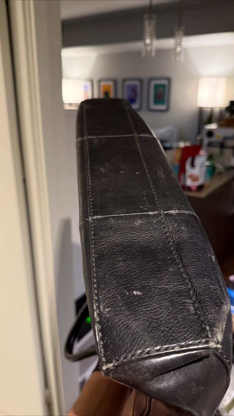 Black Leather Laptop Briefcase – Fossil Bought this Fossil leather laptop briefcase about 10 years ago for around $300. Barely used it, then it sat in storage for years. Just not my style anymore. Details you should know: • Has three main compartments inside (two of them zippered) — lots of room to keep stuff organized. • Doesn’t come with the shoulder strap. • I added Velcro to the little side pocket so it actually closes — perfect for a small phone or wallet. • Definitely some wear and tear, but still totally usable.