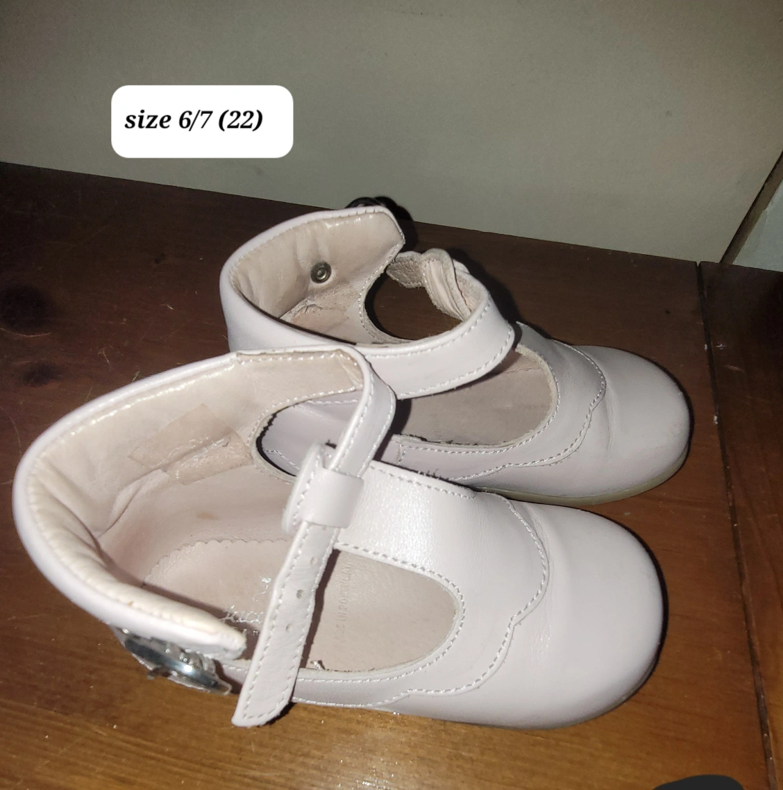 FREE These adorable Mary Jane style shoes are perfect for your little one! They are a light pink colour and size 6/7 (22). They show some signs of wear.