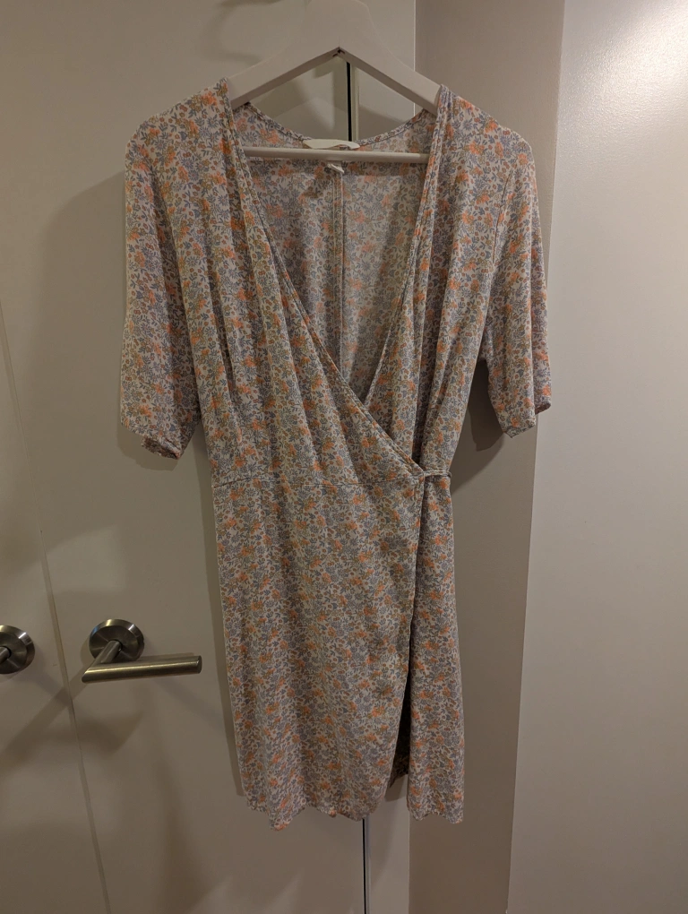 Cute H&M wrap dress with a floral pattern. It's a size medium and in great condition. Perfect for a casual day out!