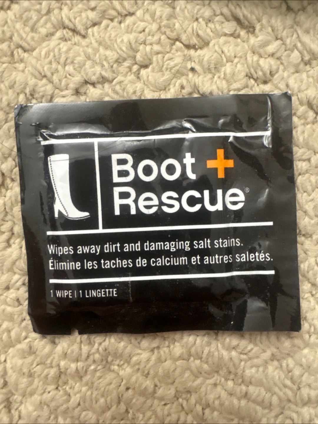 Keep your boots looking their best with a Boot Rescue wipe! This wipe is designed to easily remove dirt and damaging salt stains from your footwear. Each package contains one wipe.
