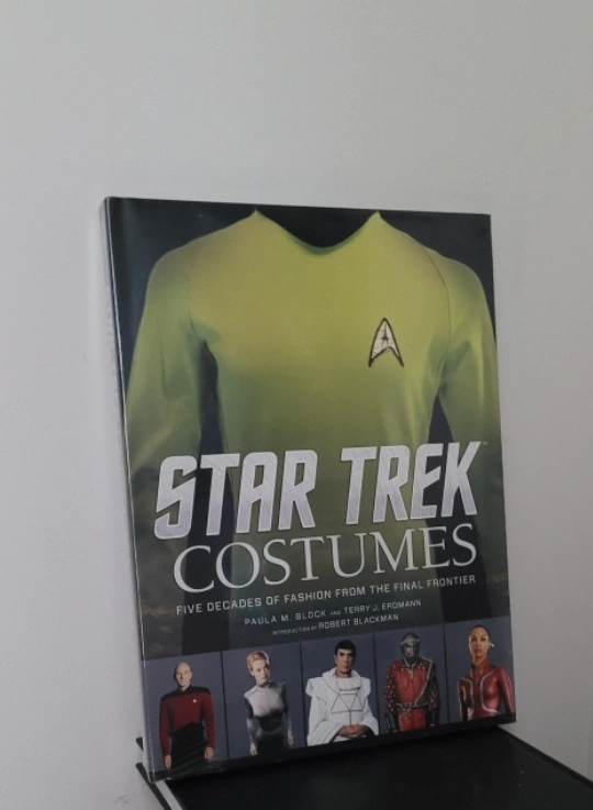 Selling a book titled 'Star Trek Costumes: Five Decades of Fashion from the Final Frontier' by Paula M. Block and Terry J. Erdmann. It's a fascinating look at the iconic outfits from the Star Trek universe Brand new, still in plastic wrap. Cash or trade https://www.amazon.ca/Star-Trek-Costumes-Paula-Block/dp/1608875180