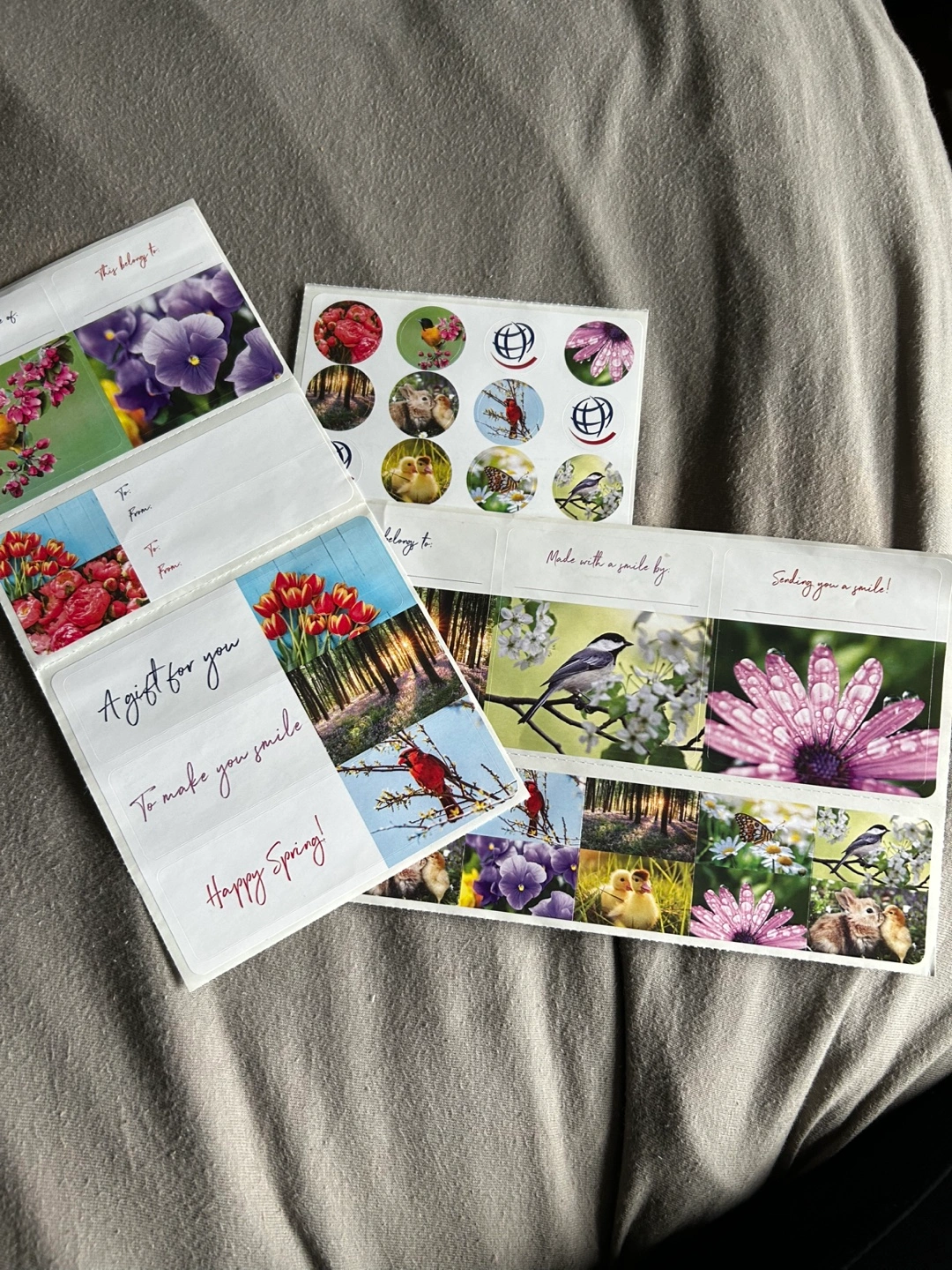 Here's a set of spring-themed gift tags and stickers to add a personal touch to your gifts! They feature lovely images of flowers, birds, and cute little ducks. Perfect for adding a little cheer to any present!