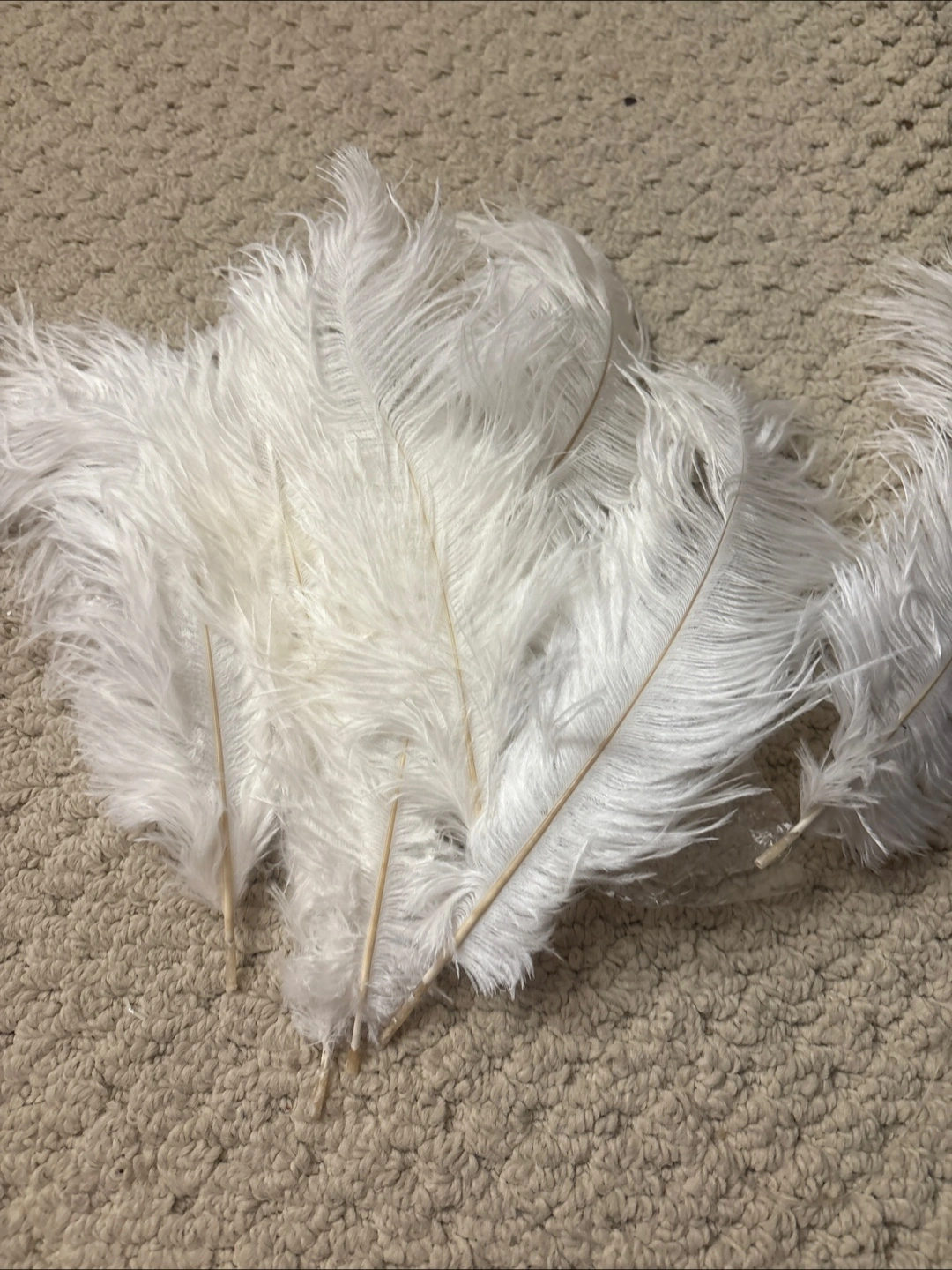 Selling a bundle of beautiful white ostrich feathers! They're in great condition and perfect for crafts, decorations, or costumes