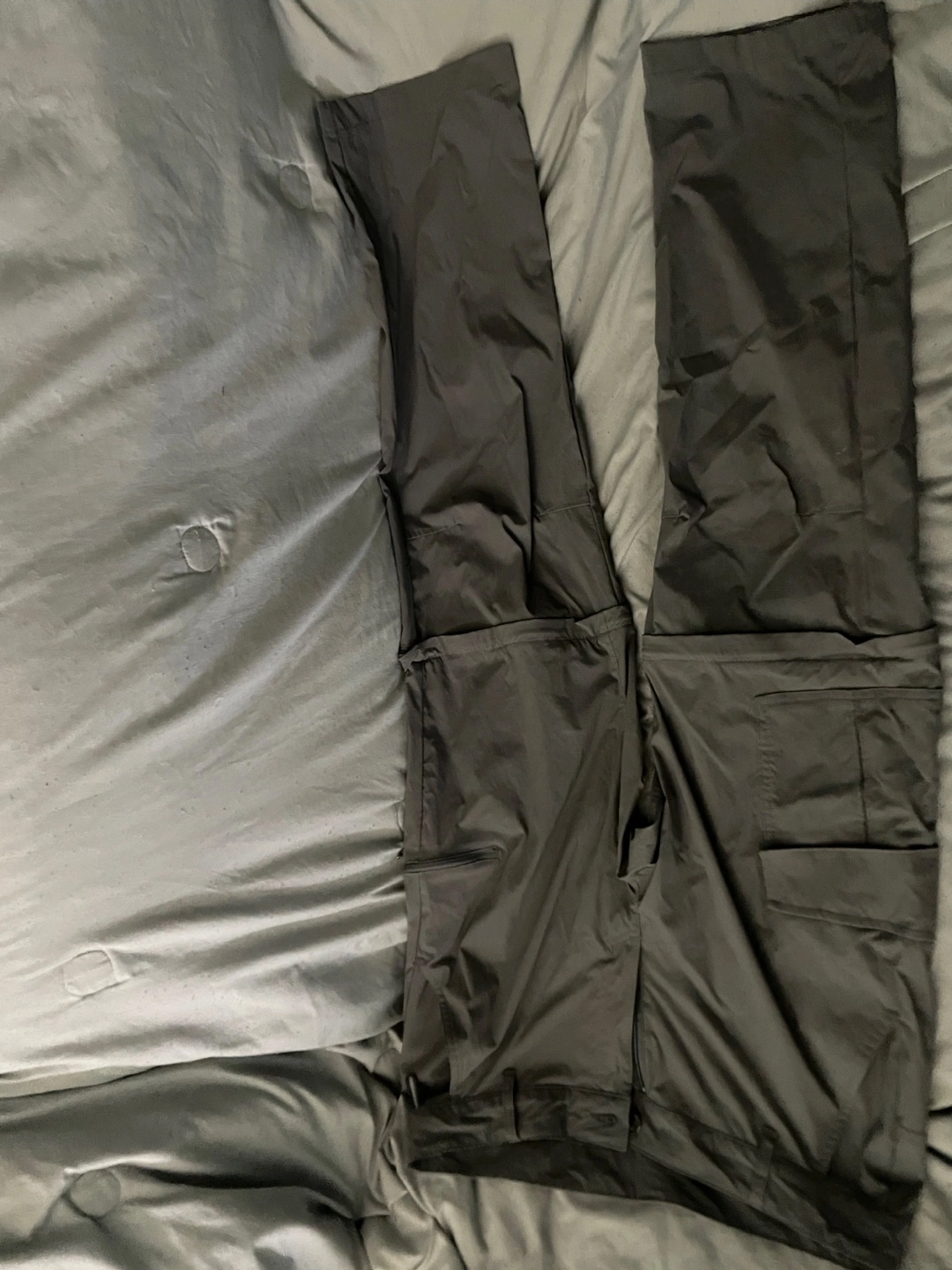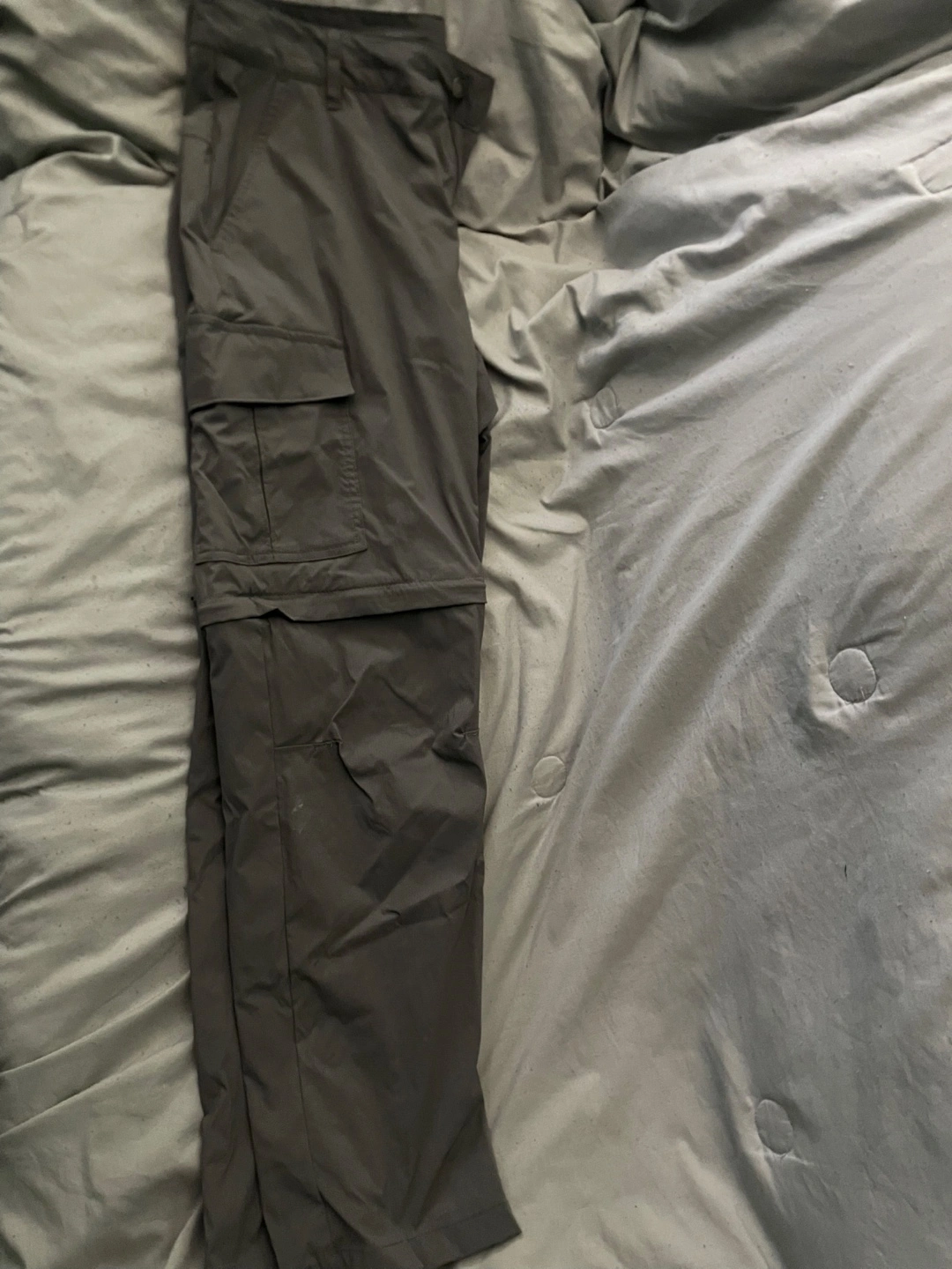 34x32 These convertible hiking pants are perfect for hitting the trails! They're a dark grey colour and can easily be converted into shorts when the weather warms up. Great for any outdoor adventure