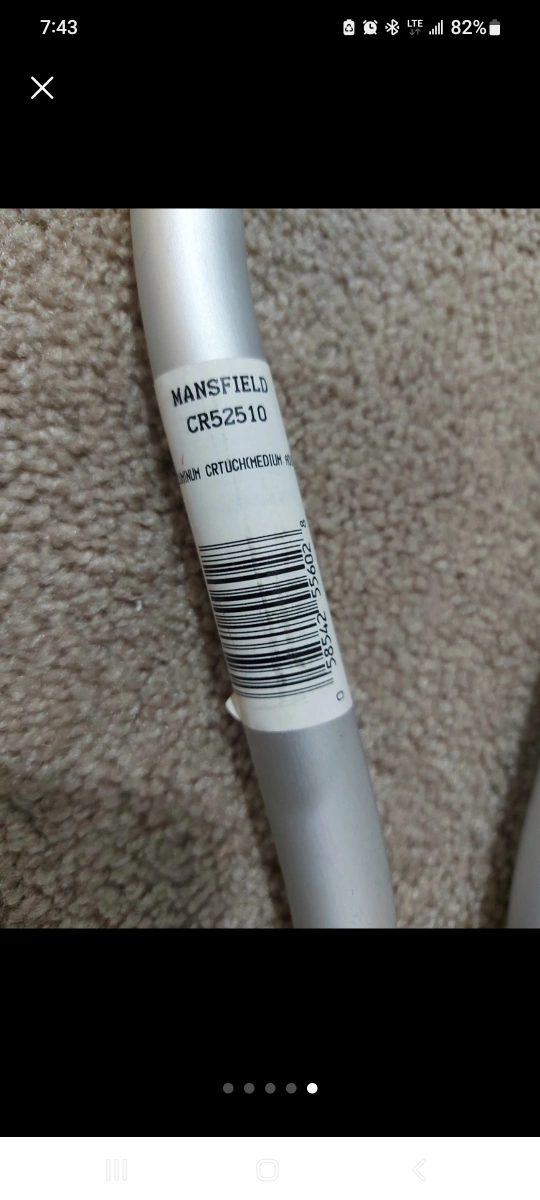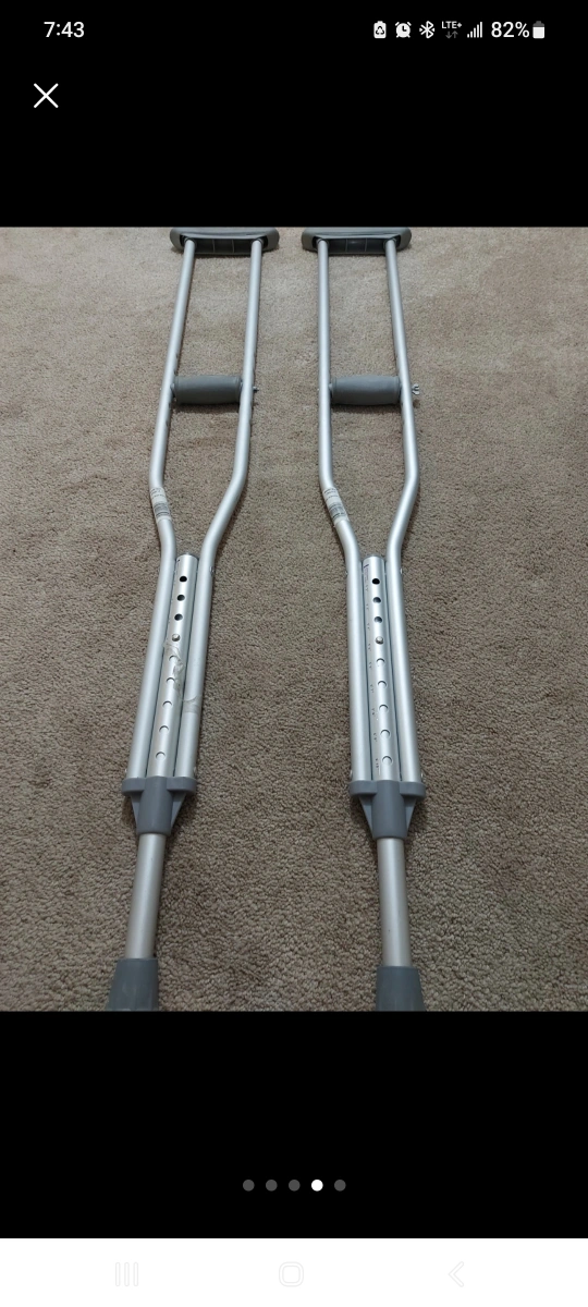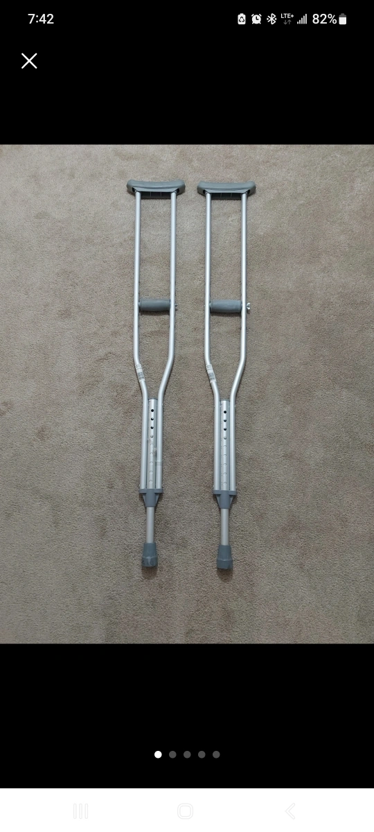 Selling a pair of Mansfield aluminum crutches, size medium. They are adjustable for patient heights between 5'2" and 5'10". Great for anyone needing a little extra support!