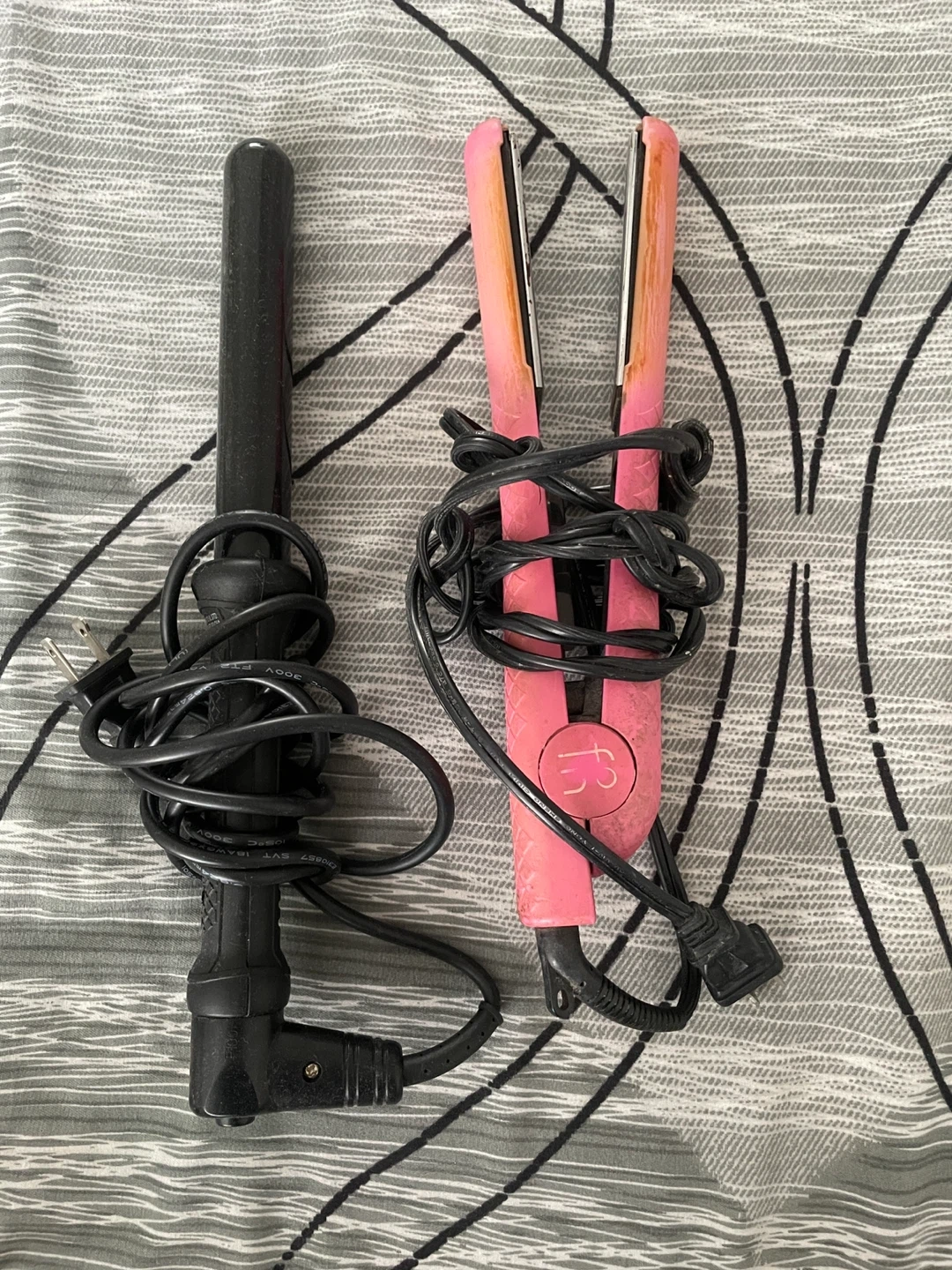 Selling a T3 curling iron and flat iron set. Both are in used condition, as shown in the photos. Great for styling your hair!