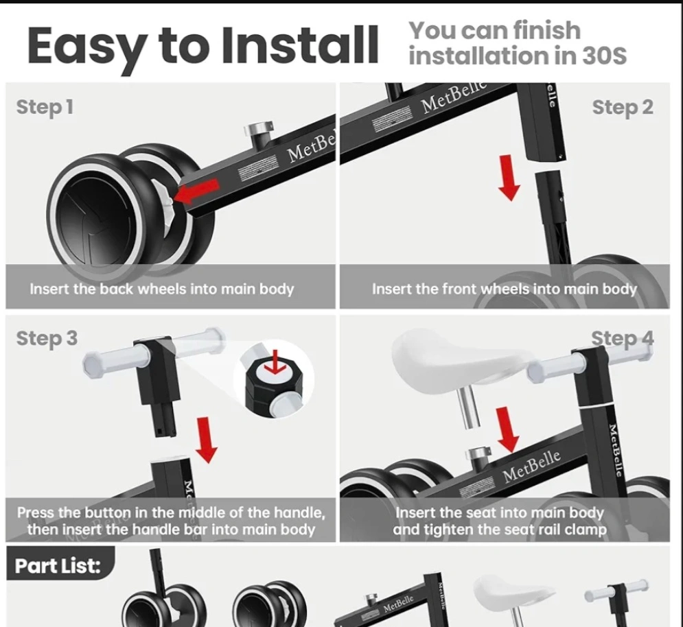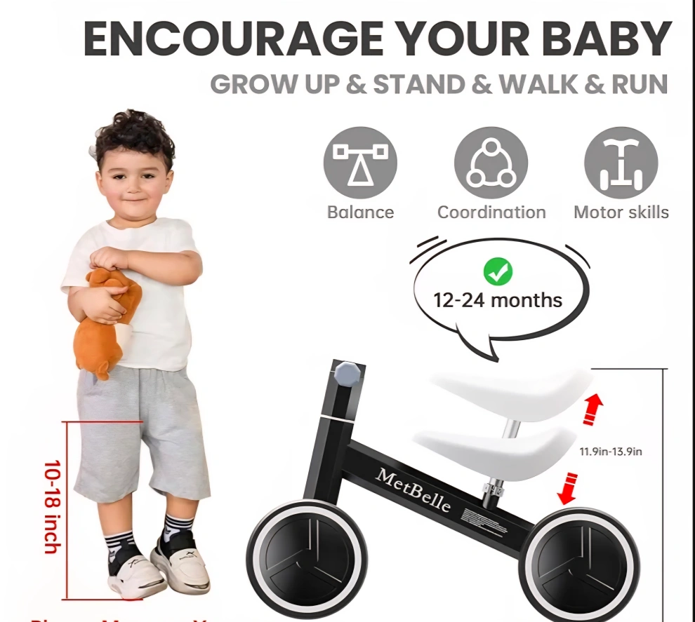 METBELLE Balance Bike for 1 Year Old to Toddler Bike with Adjustable Seat, Baby Balance Bikes for 10-24 months Boys/Girls, Toddler Toys, First Birthday Gift. Available in Pink