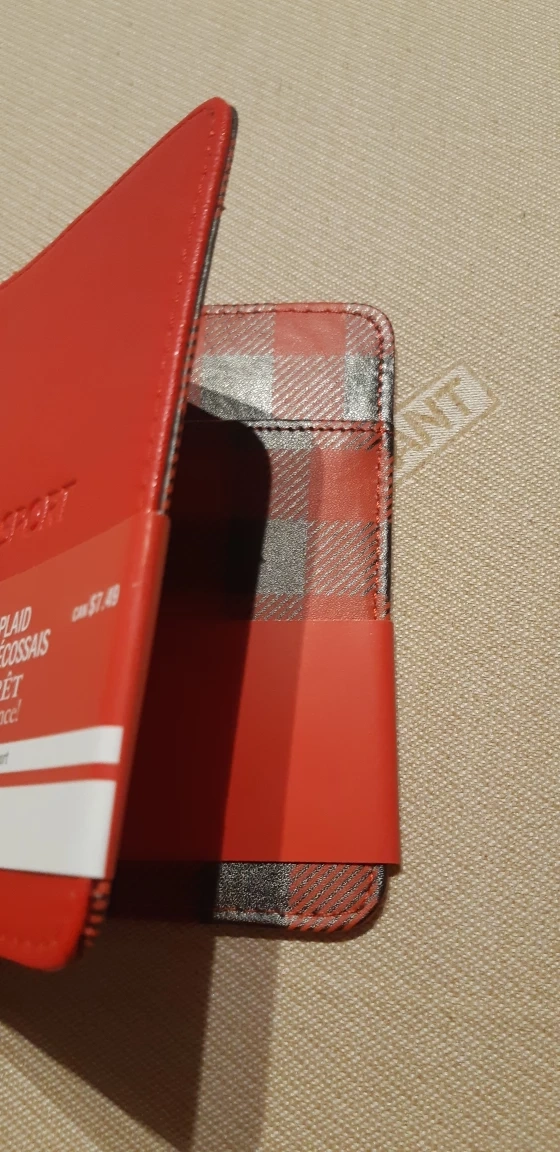 This is a Mad for Plaid passport case in a vibrant red colour. It's brand new and still has the original tag attached. It was originally bought for $7.49. Perfect for keeping your travel documents organized!