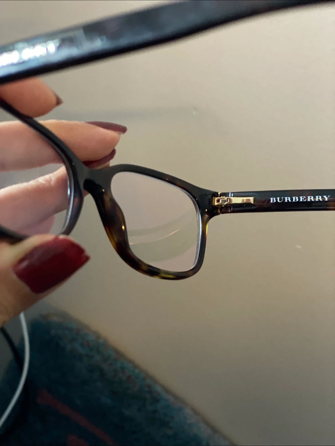 Selling a pair of Burberry eyeglasses, model B 2201. The frame has a stylish tortoise shell pattern. The size is 52-17-140. Made in Italy.
