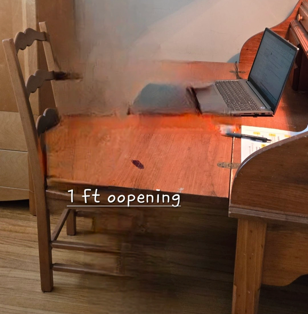 Selling a charming antique wooden desk and chair set. It's a beautiful piece with lots of character. The desk is approximately 4 ft wide and 4 ft tall, with a 1 ft opening for leg space. The depth is about 2 ft 8. Perfect for adding a vintage touch to your home office or study space. Retractable door for tidy and privacy.
