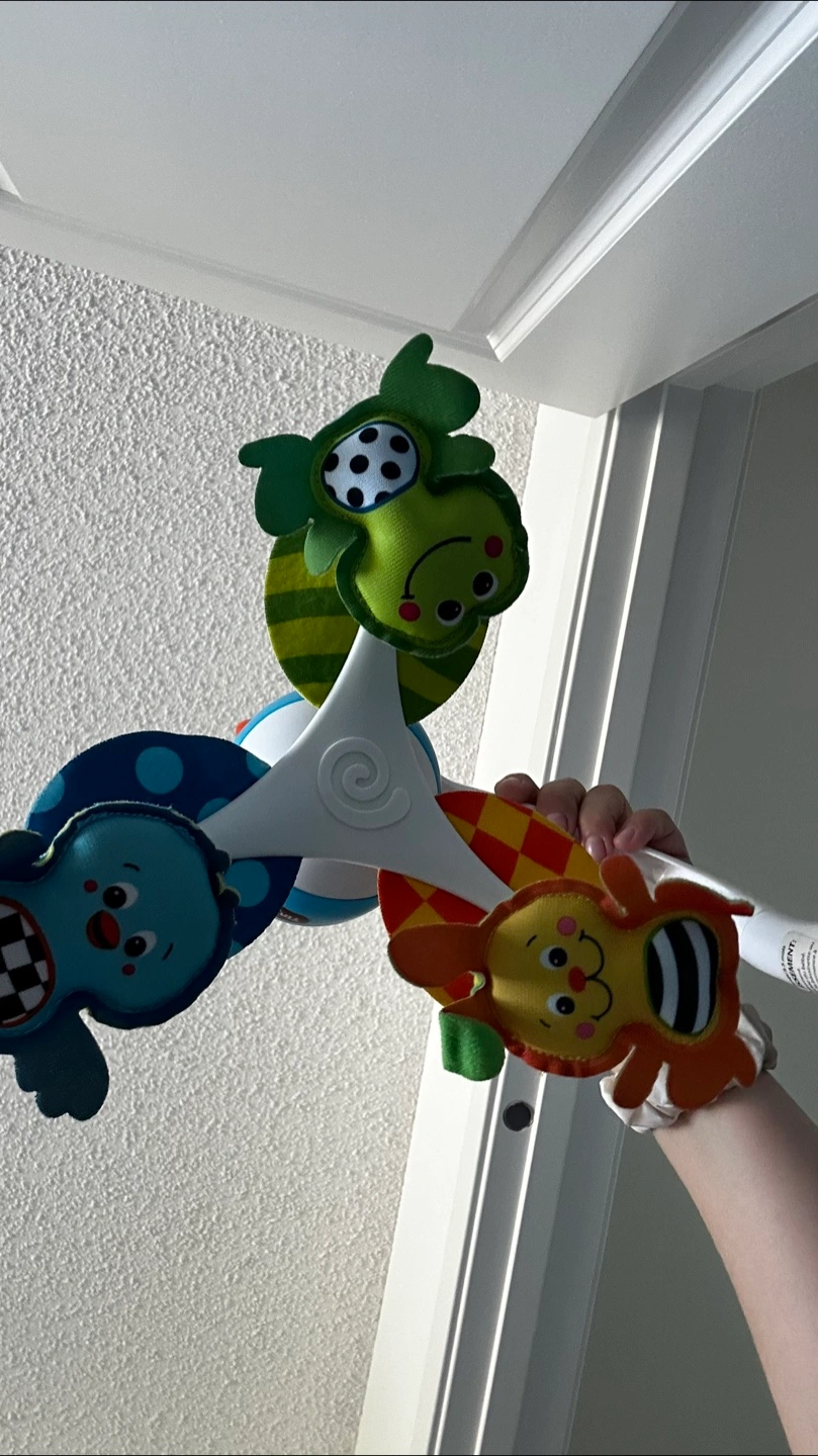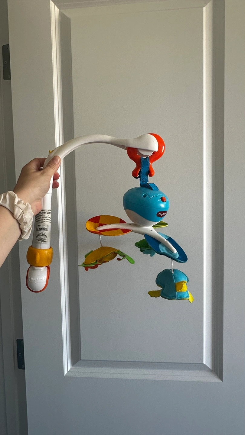 This is a Tiny Love Take Along Mobile in great condition! It features adorable animal characters and is perfect for keeping your little one entertained on the go. It easily attaches to most cribs, strollers, and bassinets, making it a versatile and convenient choice for parents