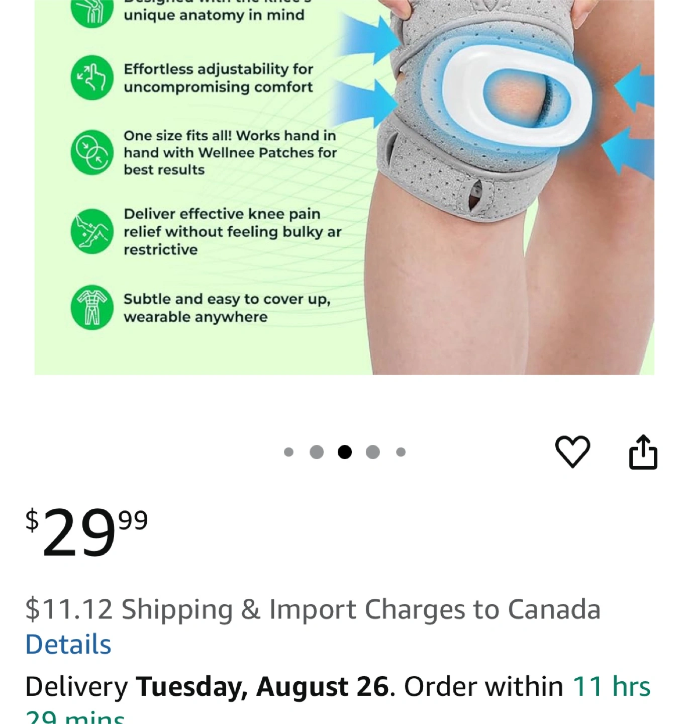 I'm selling a Wellnee Knee Brace, designed for all-day knee discomfort relief. It's made with high-quality materials for comfort and effectiveness. - One size fits all - Resists moisture - Specially designed