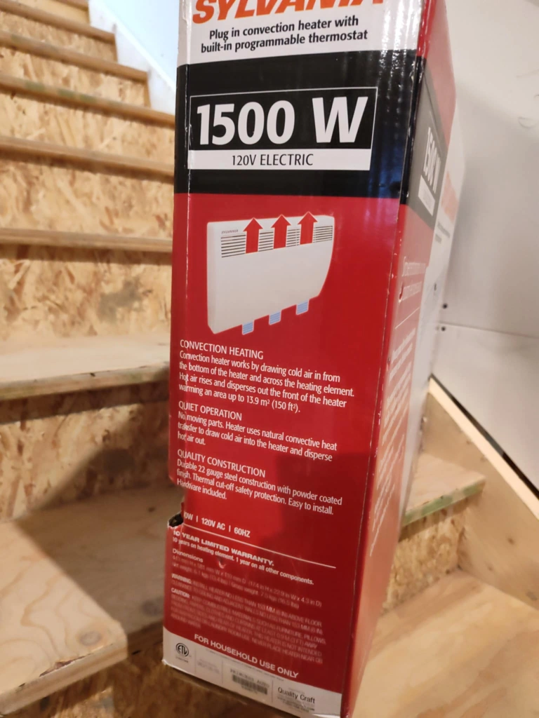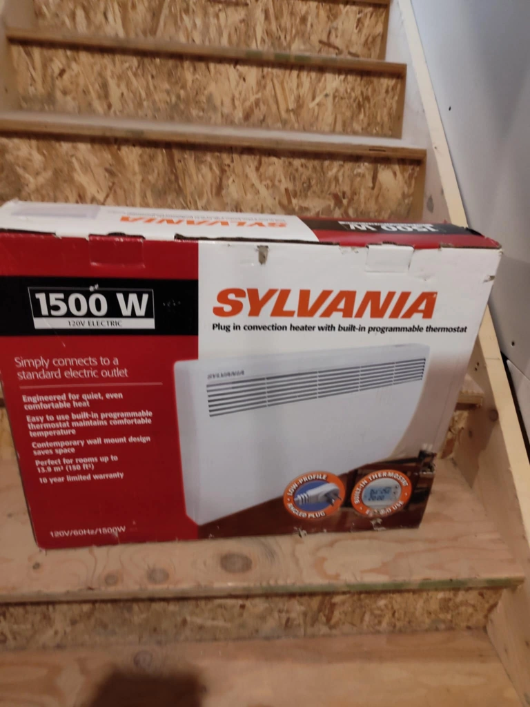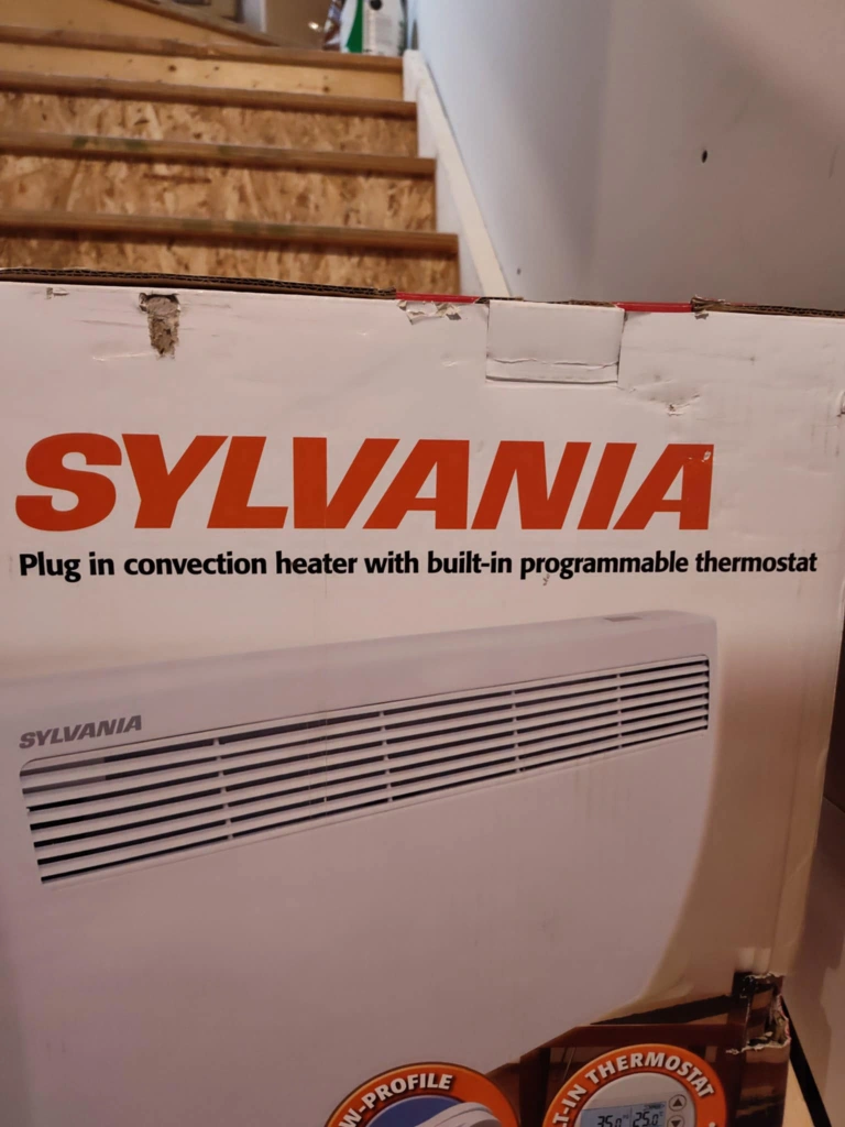 Selling a brand new Sylvania 1500W convection heater! It's still in its original box and has never been used. This heater features a built-in programmable thermostat and is designed for quiet operation. It uses natural convection to draw cold air and disperse hot air, warming an area up to 13.9 m² (150 sq ft). The heater also has quality construction with durable 22 gauge steel and a powder-coated finish. Perfect for rooms up to 14 m² (150 sq ft) and has a 10-year limited warranty
