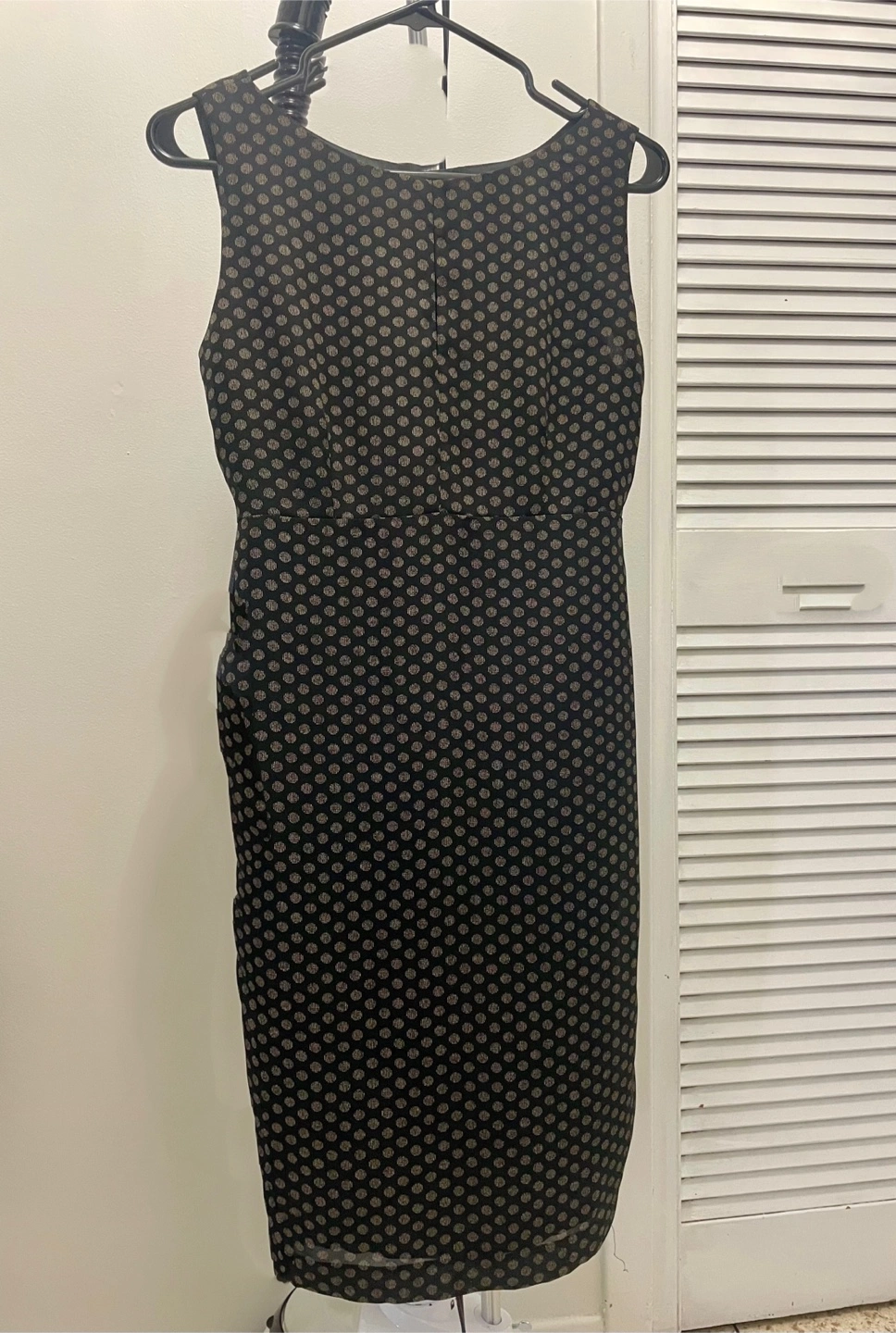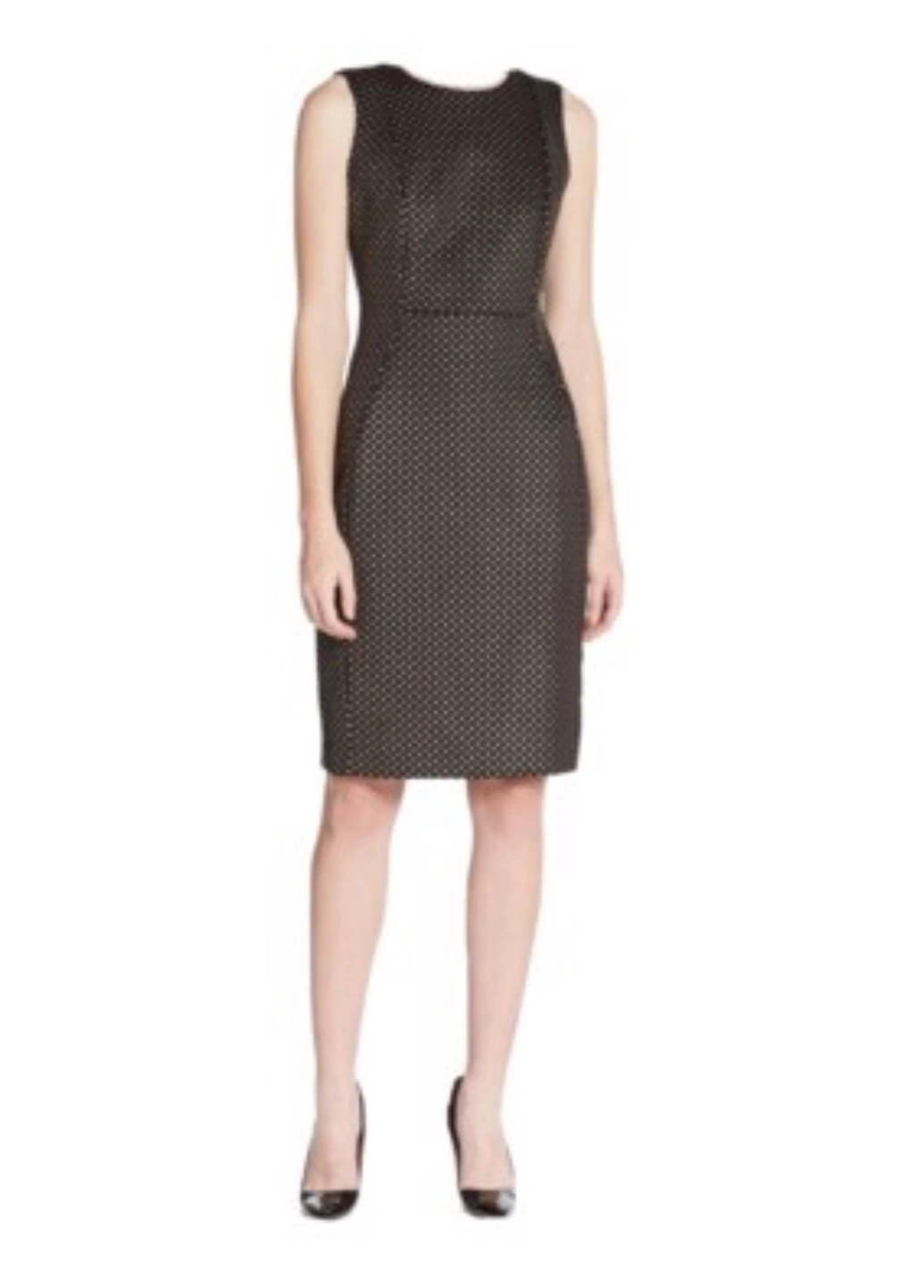 Dark brown sleeveless dress. It's a stylish and classic piece that's perfect for work or a special occasion. The dress is in great condition and ready for a new home!