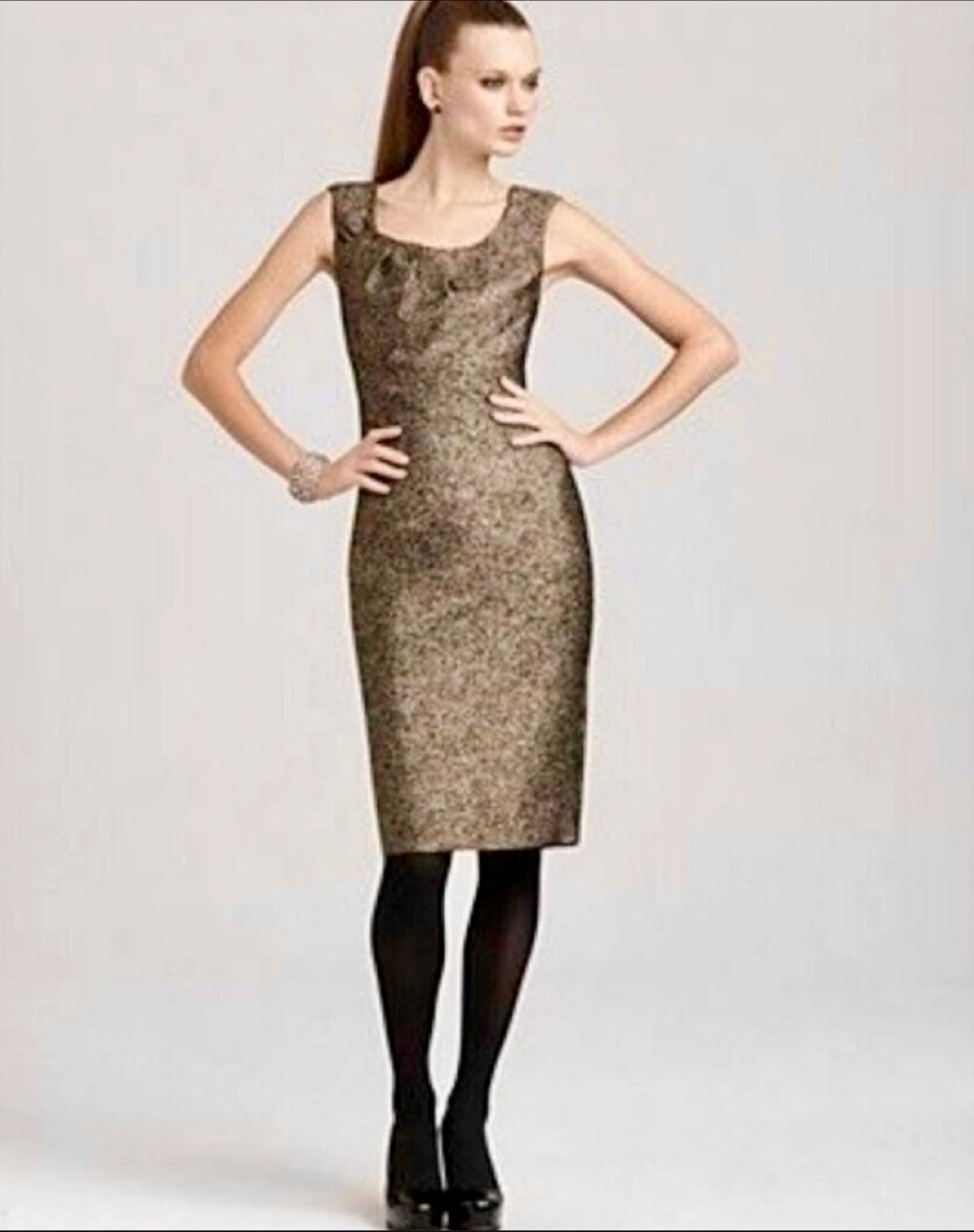 Selling a lovely gold sleeveless dress, Mikhael Kors style. It's in great condition and ready for a new home! The dress has a unique textured pattern and a flattering silhouette, perfect for a special occasion or a night out. Size M.