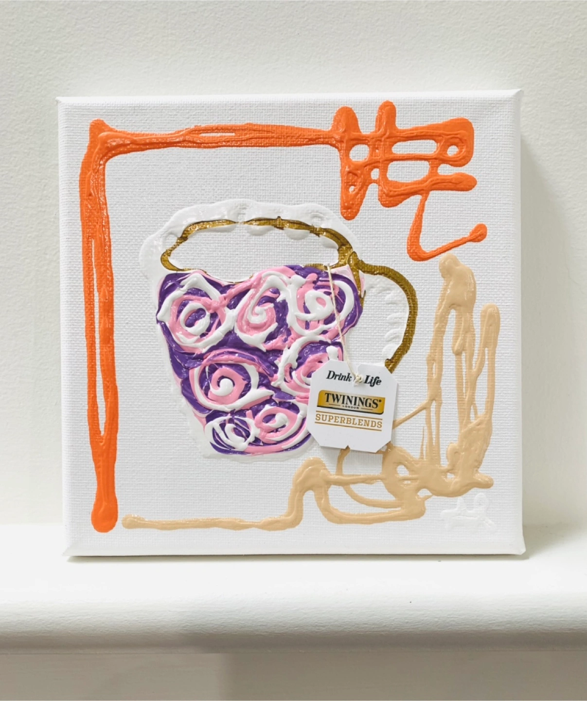 6x6 Title “Tea and Petals” Original art by @saucesupcanvas East York local artist Mixed media - acrylic paint and real tea tag inclusion