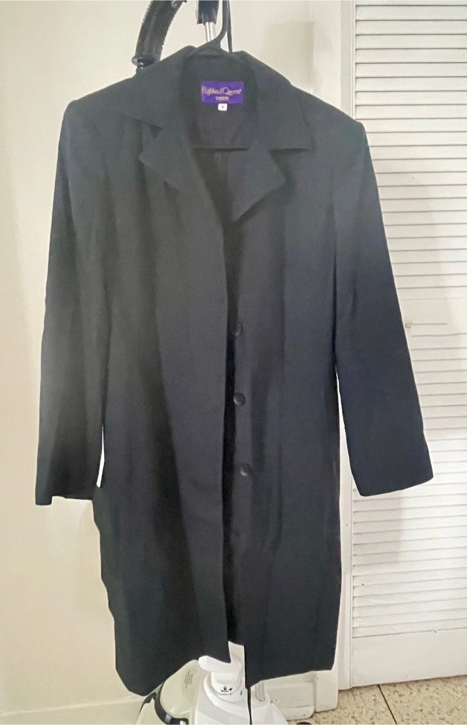 Selling a gently used Highland Queen Petite black coat in size 6. It's in great condition and perfect for layering! This stylish coat is ready for a new home.