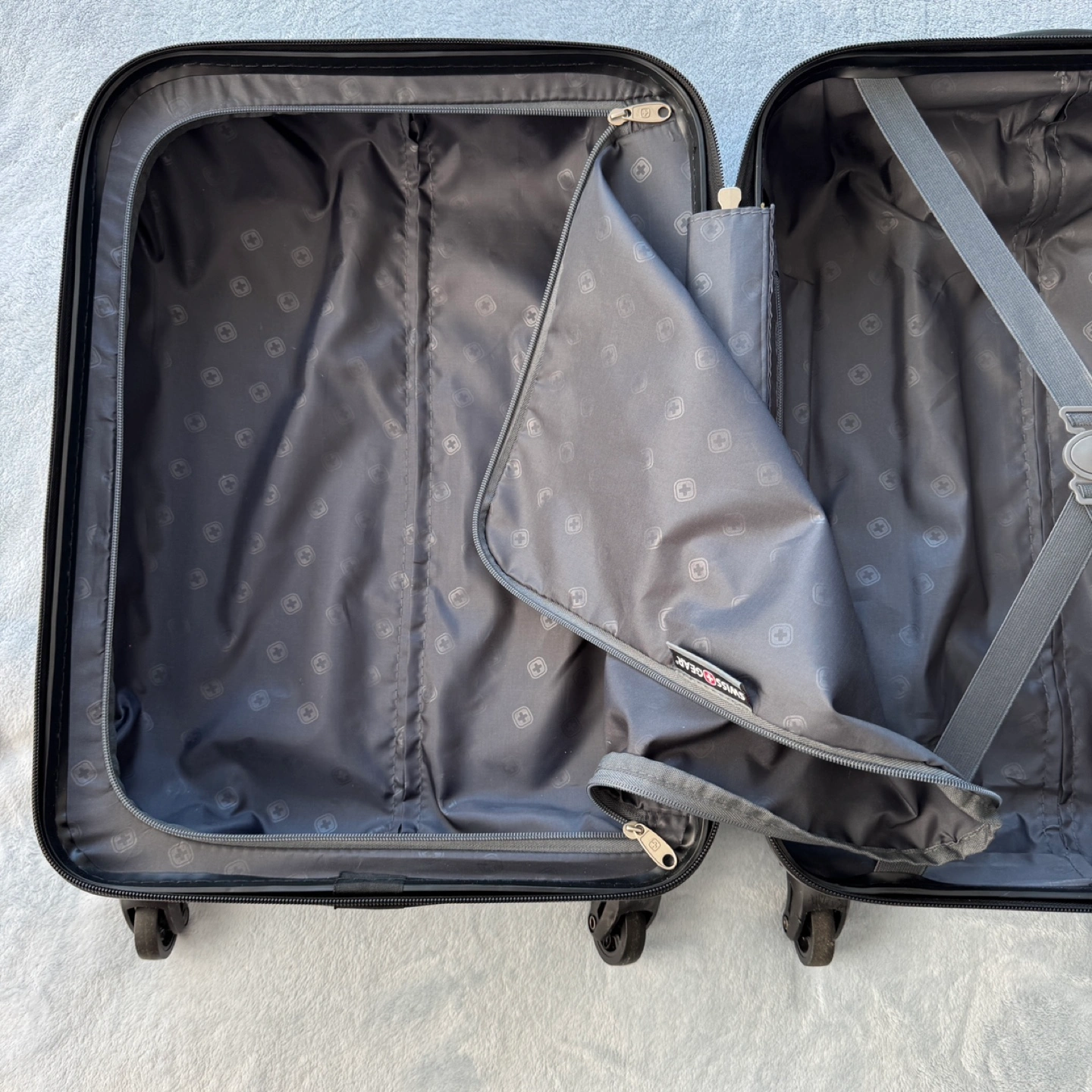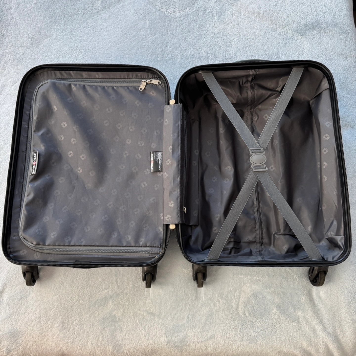 Looking to sell a Swiss Gear carry-on suitcase. It's in great condition and ready for your next trip! The suitcase features a hard shell exterior and a spacious interior with straps to keep your belongings secure. Perfect for weekend getaways or as a convenient carry-on for longer travels