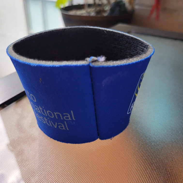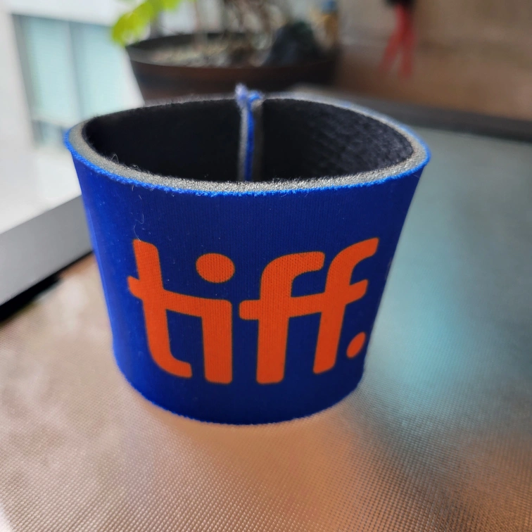 Keep your drinks cool with this blue TIFF (Toronto International Film Festival) drink cozy! It's perfect for keeping your hands dry and your beverages at the perfect temperature. Great for barbecues, movie nights, or just relaxing at home