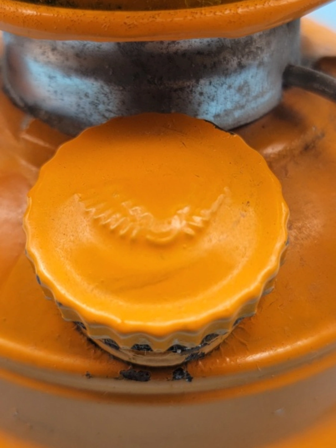 Here's a Winged Wheel No.350 kerosene lantern! It features an orange body with a yellow glass globe. This vintage lantern would be a great addition to any collection or for use during power outages. It shows some signs of wear, which adds to its vintage charm. There is a crack in the glass. Please look closely at the attached photos to go along with the description and the condition of the item. Willing to ship at the Buyers expense. Please see my many other listings. Thank you for looking. Have a Happy Day! 🙂
