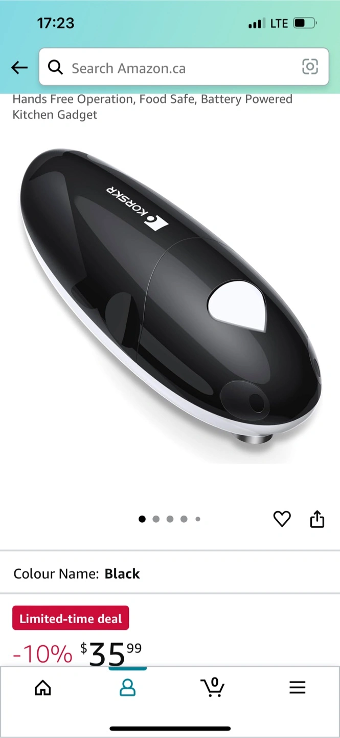 Retails at $35. I'm selling a brand new KORSKR automatic can opener in black! It's still in its original packaging and has never been used. It features: - Hands-free operation - Food-safe design - Battery-powered Originally bought for $35.99