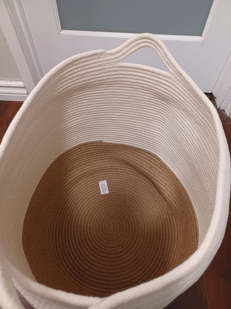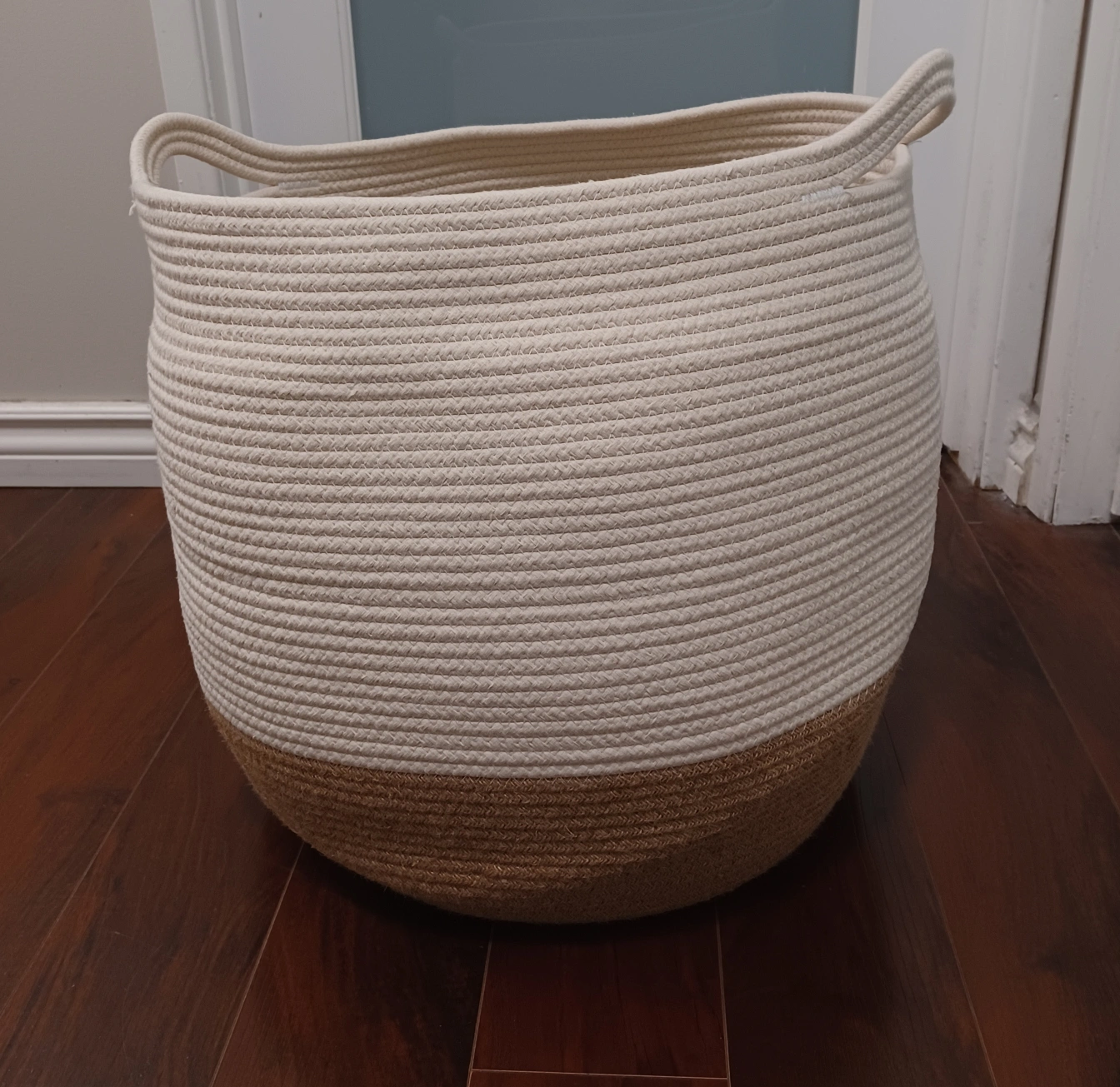 Selling a Goodweave basket in white and beige made of rope. Perfect for storage or decoration! Height: 17 inch
