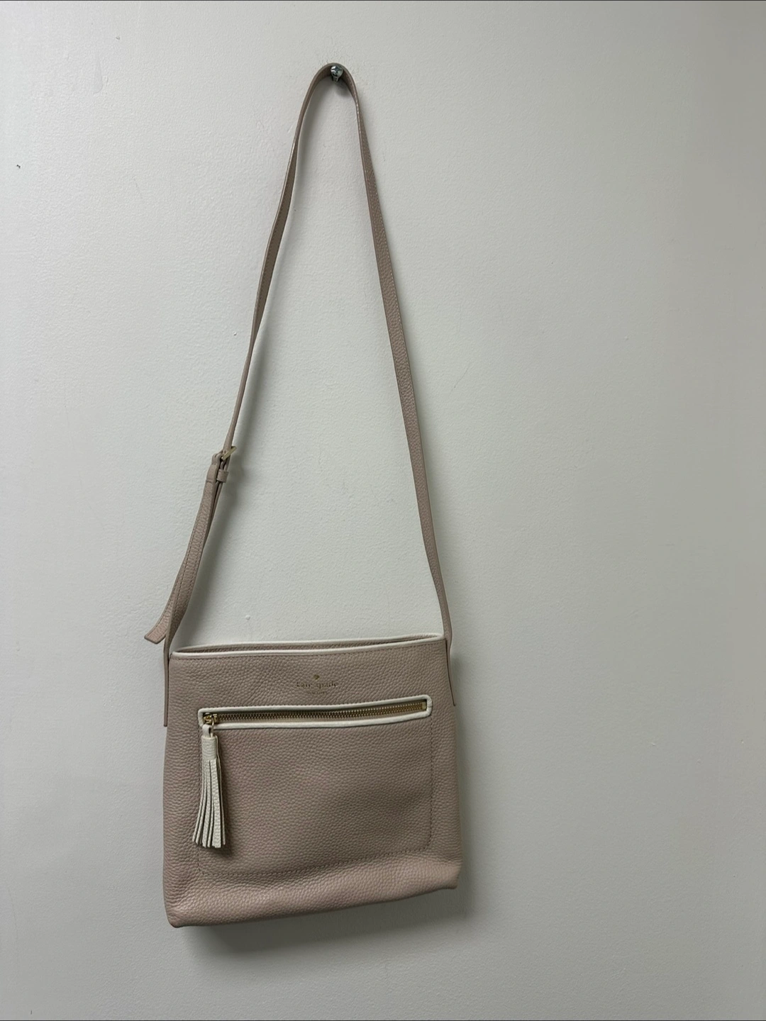 Selling a Kate Spade crossbody bag in a lovely beige colour. It's in great condition and perfect for everyday use. Features a convenient front zipper pocket and adjustable strap!