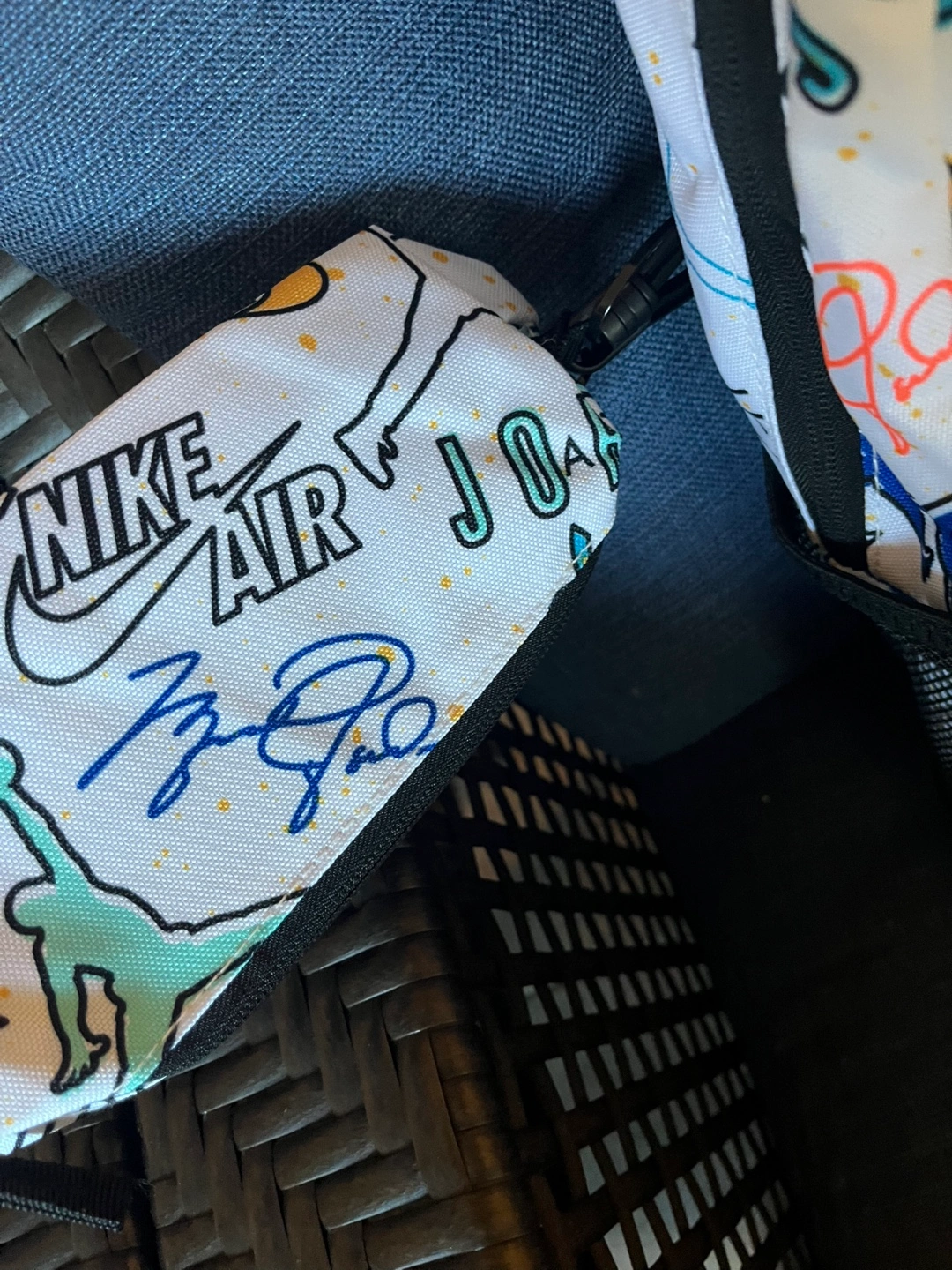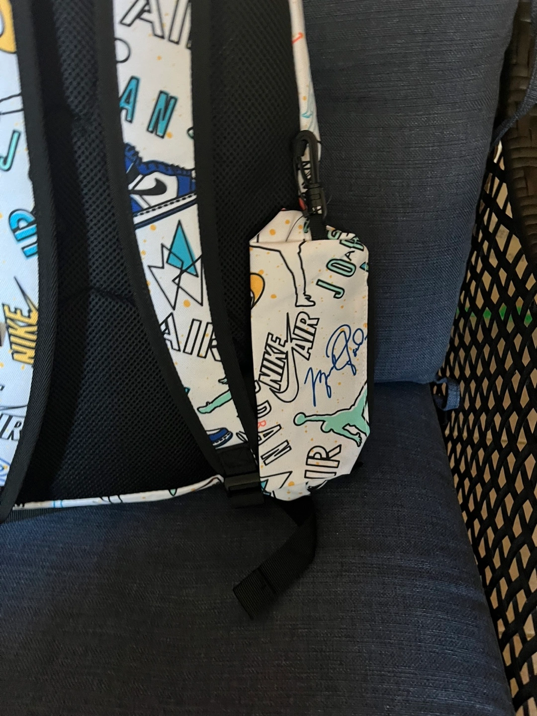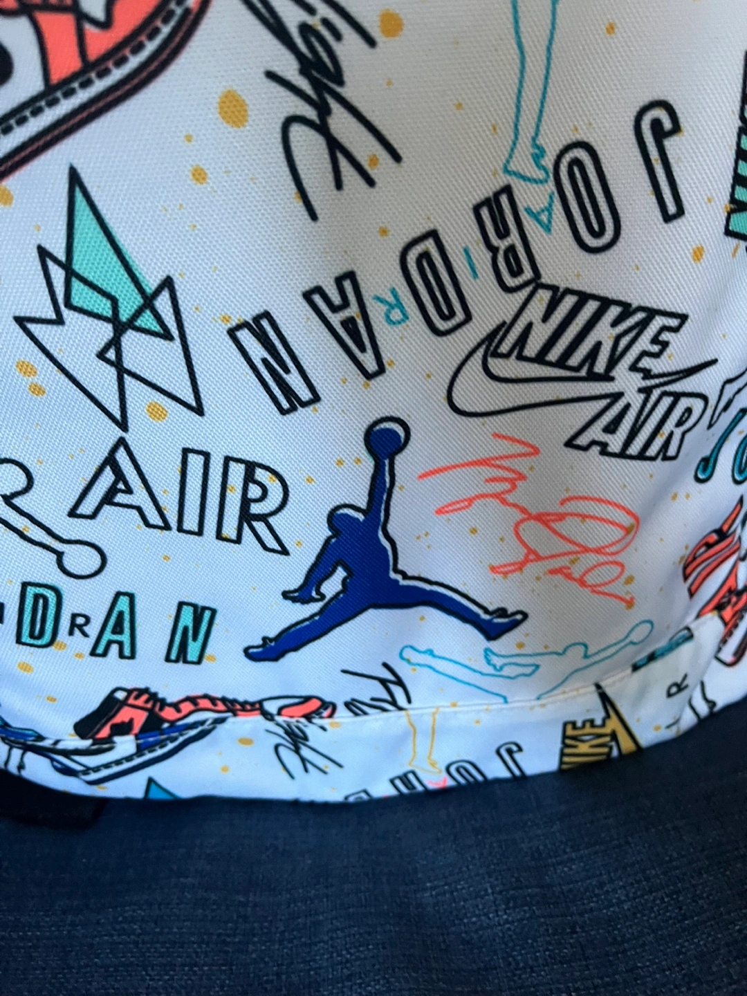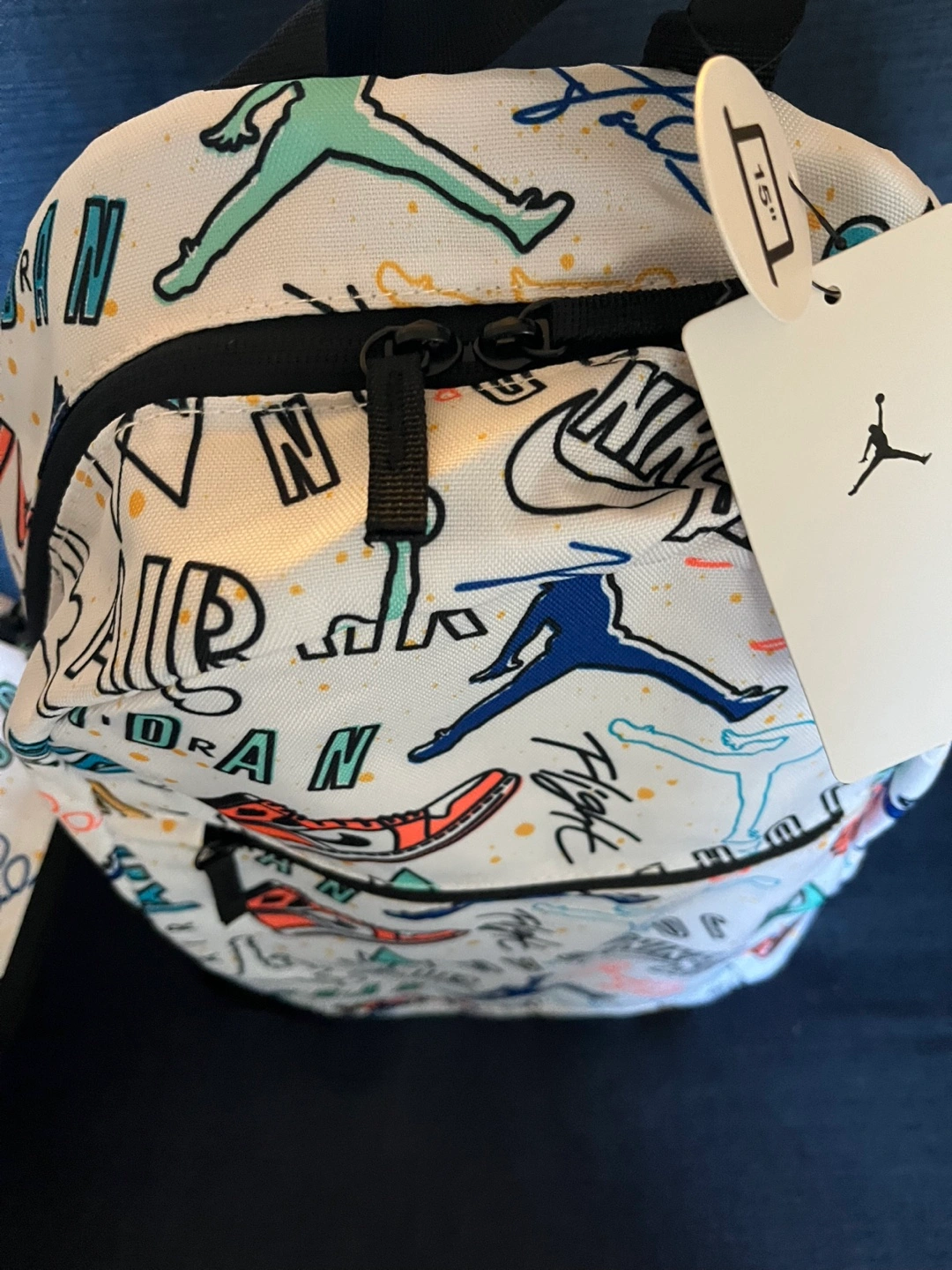 brand new backpack with pencil ✏️ case 2 piece set with tags Check out this cool Nike Air Jordan backpack! It comes with a matching pencil case, perfect for school or everyday use. The backpack has a fun, all-over print featuring the iconic Air Jordan logo and designs. It's brand new from smoke and pet free home