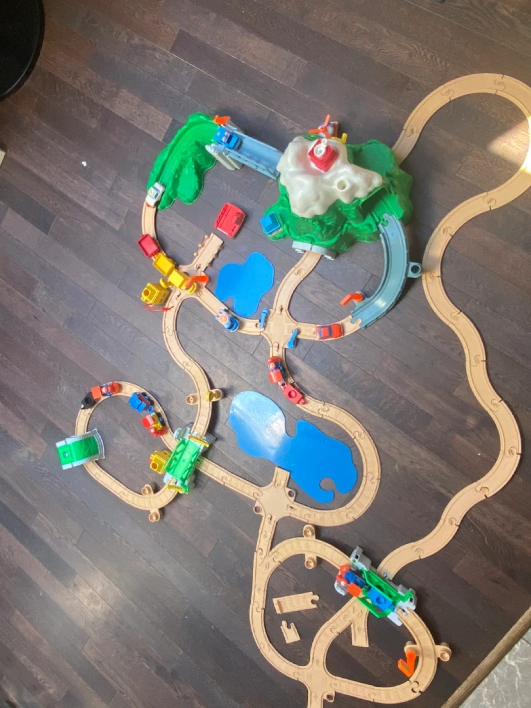Rare Fisher-Price hard plastic flip track for cars and trains. This is the big multi set. Regular price $299.. The tracks and cars in excellent condition , few stickers have scratches and the blue water from normal use.