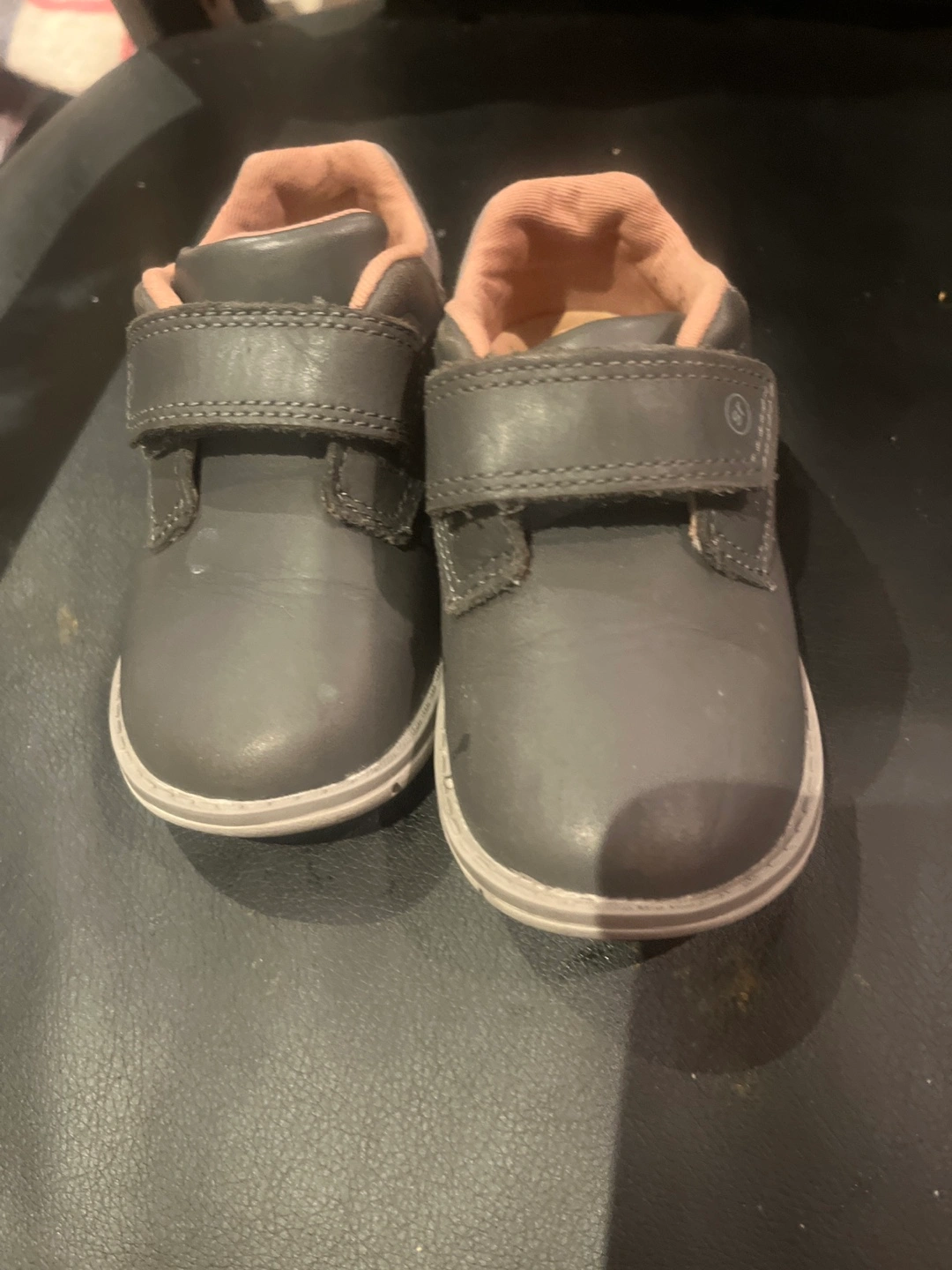 Here are some Stride Rite toddler shoes in size 5.5 They have a velcro strap and are in excellent condition.