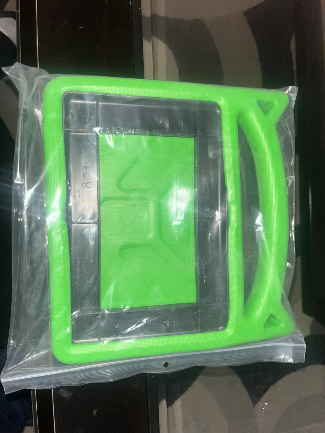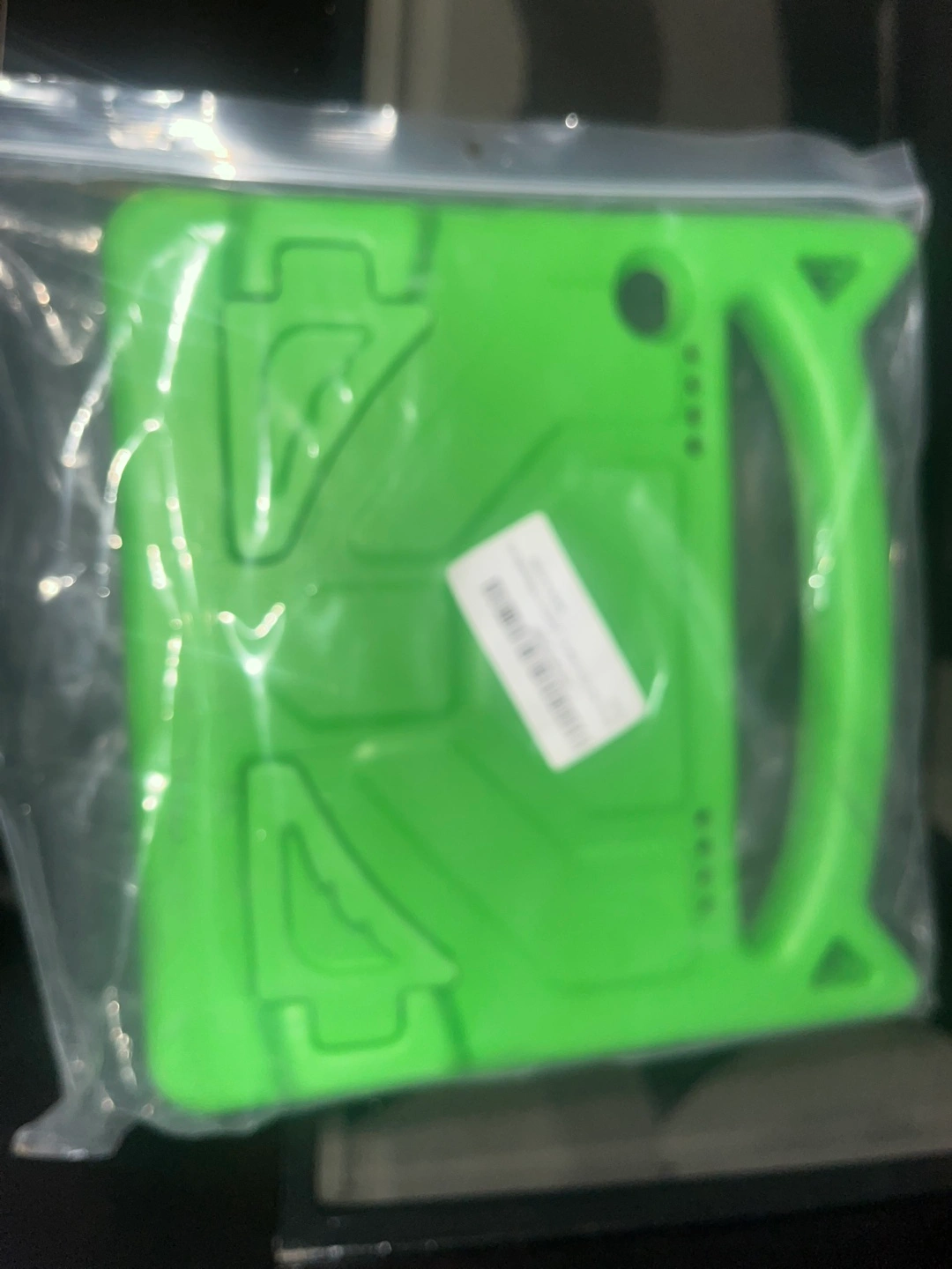 Selling a bright green tablet case for kids! It's in great condition and comes in its original packaging. It has a handle for easy carrying, making it perfect for little hands. It looks like it would fit a standard-sized tablet, roughly 8-10 inches. Great for protecting your tablet from bumps and drops!