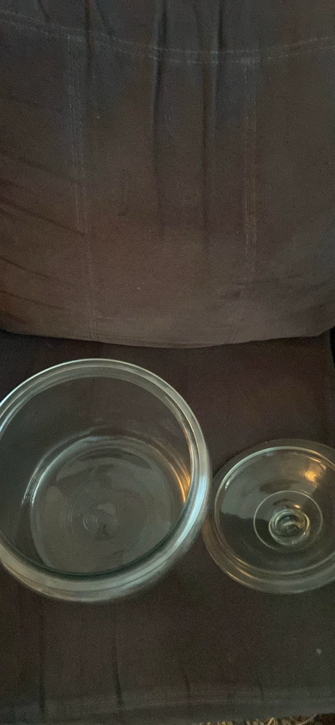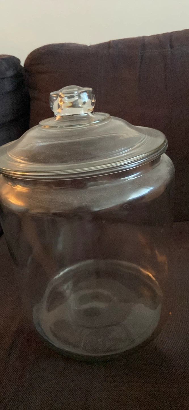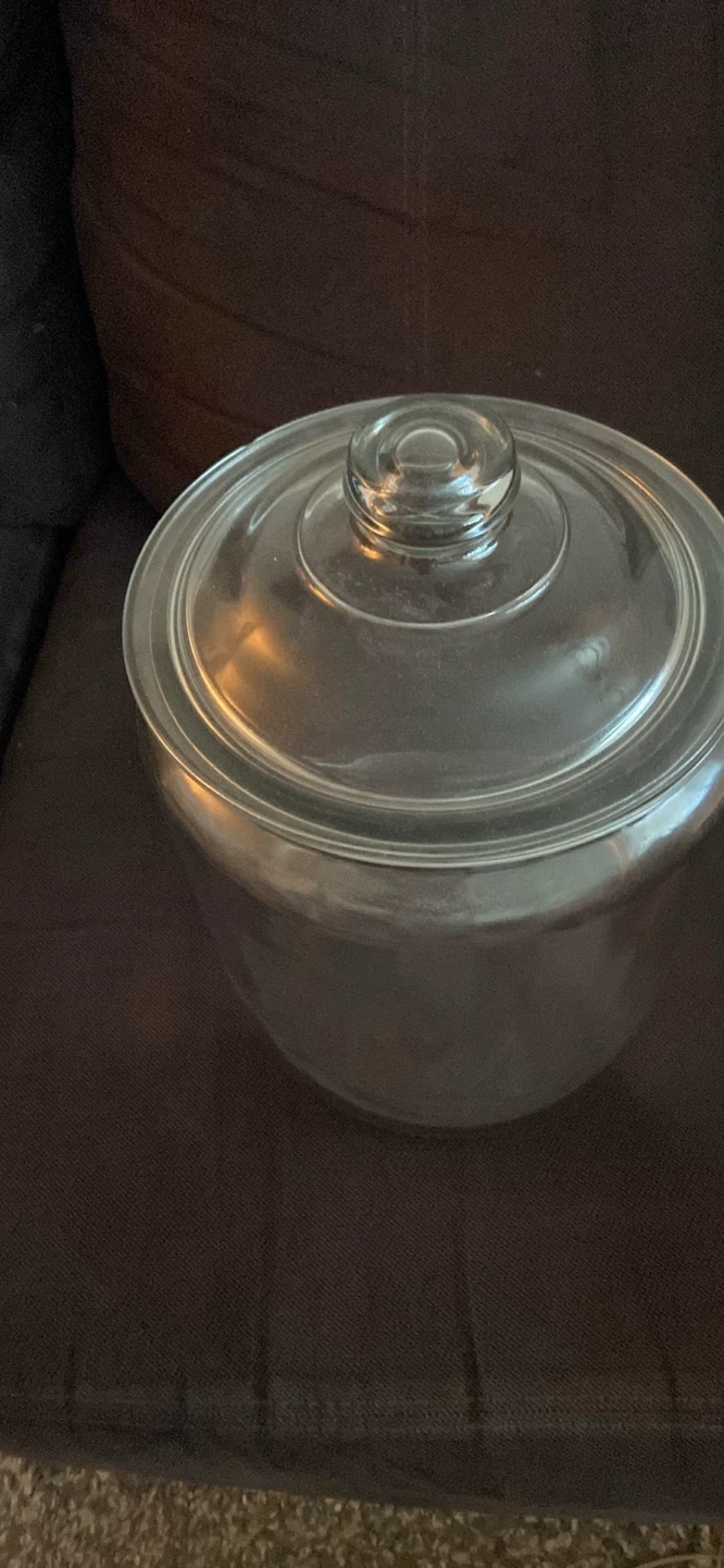 Selling a clear glass jar with a matching lid. Perfect for storing cookies, candies, or other treats in your kitchen! It's in great condition and ready for a new home