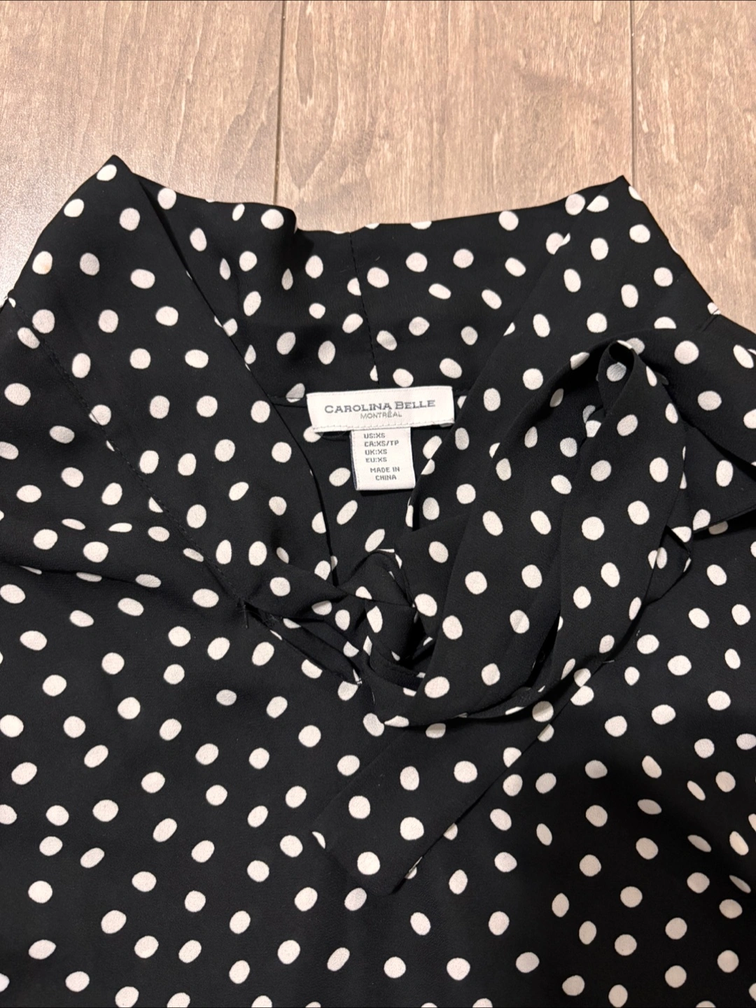 Carolina Belle blouse, polka dot pattern in black and white. The size is XS. It's in great condition