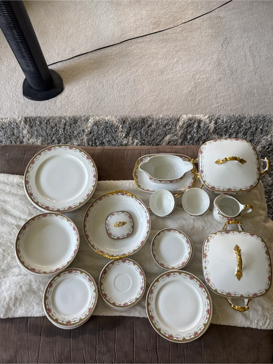 Selling a lovely vintage china dinnerware set. It features a delicate floral pattern with gold accents. Perfect for adding a touch of elegance to your dining table!