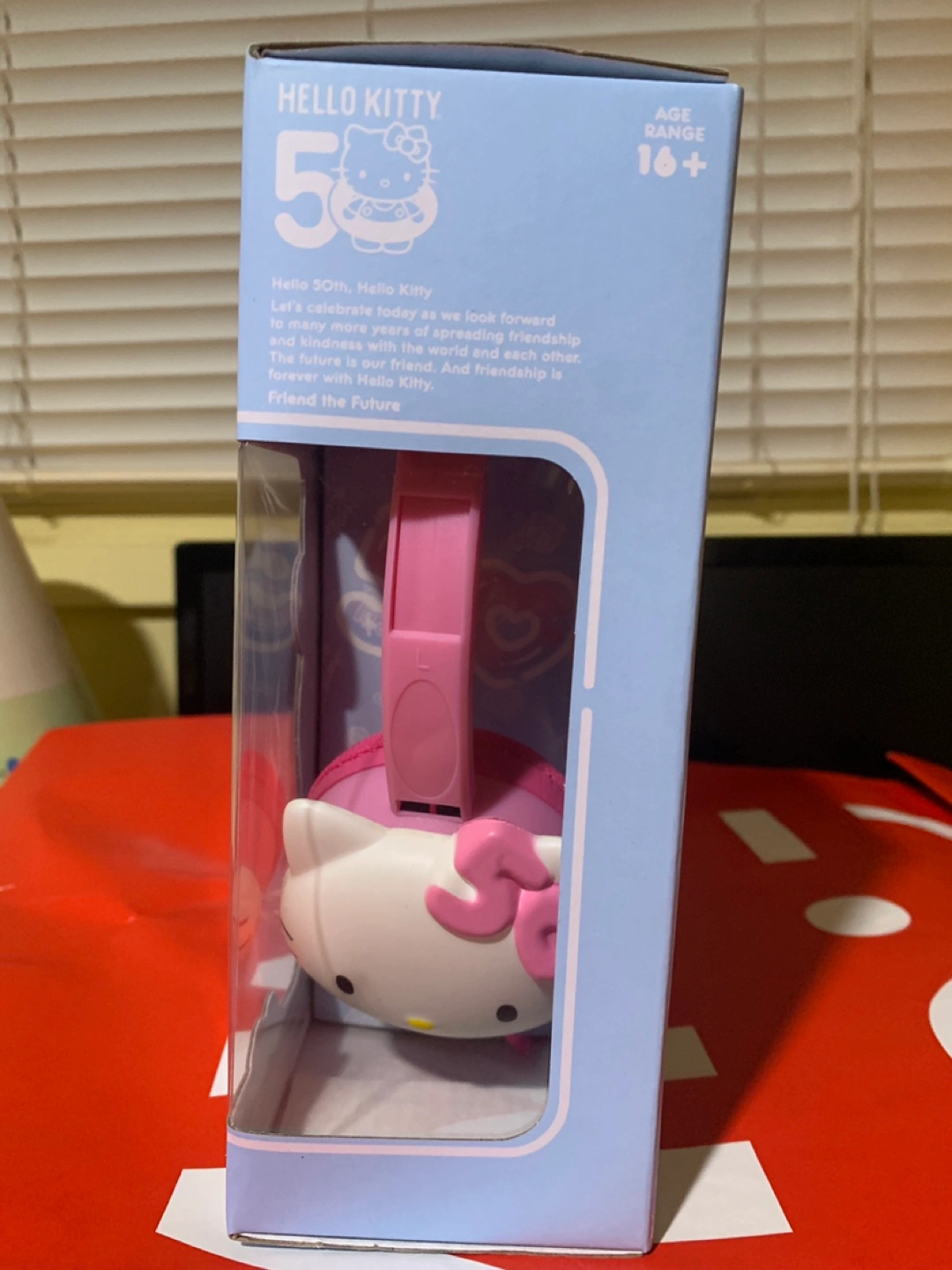 I'm selling a brand new pair of Hello Kitty 50th Anniversary wired headphones! These headphones feature: - Adjustable & Padded Headband - AUX cable connectivity - Built-in AUX cable - Squishy earcups Perfect for any Hello Kitty fan!