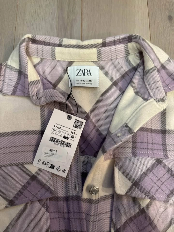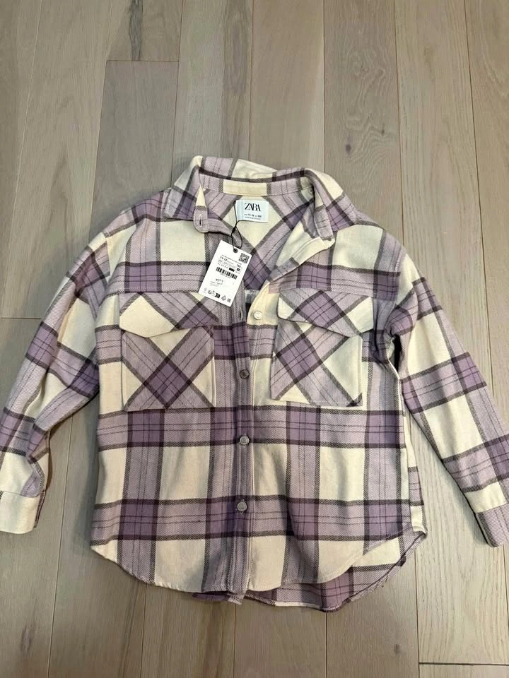 Asking $25 or best offer. ZARA Kids Plaid Flannel Shirt β Size 11-12 (152 cm) Brand new ZARA kids button-up flannel shirt with tags still attached. This stylish cream, lavender, and grey plaid shirt is soft, warm, and perfect for layering during cooler months. It features front chest pockets, snap buttons, and a slightly curved hem for a modern fit. β’ π§ Size: 11-12 years β’ π Style: Plaid Flannel / Shacket β’ π¨ Color: Cream, lavender, and grey β’ π§΅ Material: Soft flannel blend (tag shows made in Morocco) β’ ποΈ Condition: Brand new, never worn, tags attached