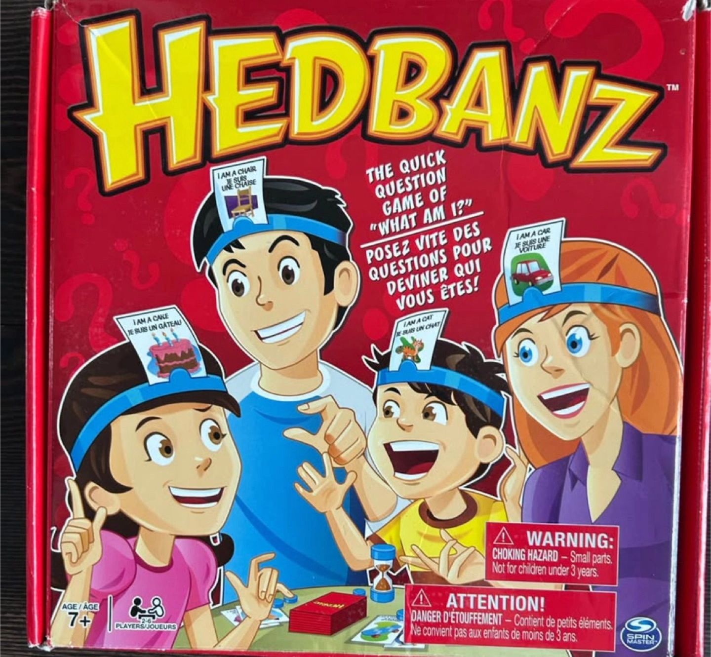Selling a Hedbanz game. It's a fun, quick question game where you try to figure out what you are! Suitable for ages 7+ and for 2-6 players. Get ready for some family fun!
