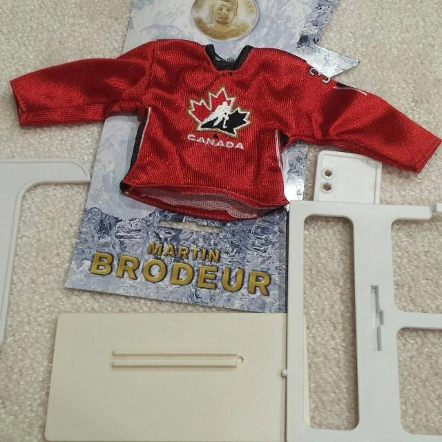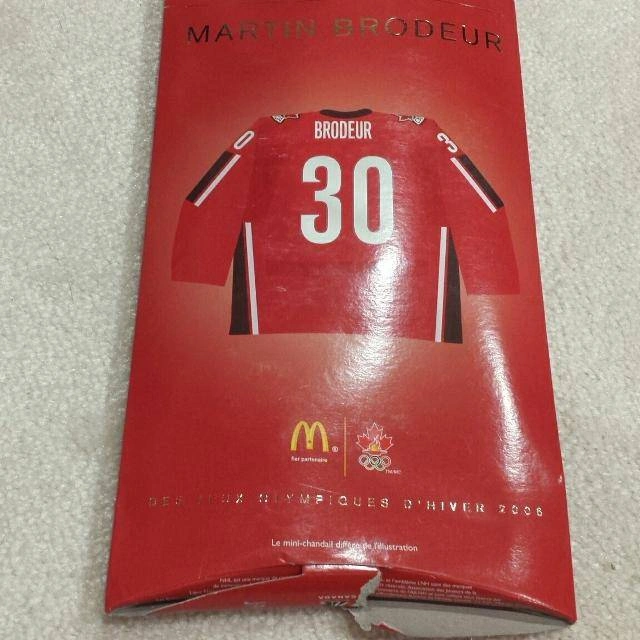 Own a piece of Olympic and hockey history with this 2006 McDonald’s Team Canada Mini Jersey featuring legendary goaltender Martin Brodeur (#30). Officially licensed collectible from McDonald’s and Team Canada Hockey Released for the 2006 Winter Olympics Mini fabric jersey in Canada’s classic red design with Brodeur ’s name and number 30 on the back Includes original display stand and packaging (packaging shows light wear) Perfect for hockey fans, collectors, and Team Canada supporters Condition: Jersey and stand are in excellent condition. Packaging has some wear from storage (see photos). A great addition to any hockey memorabilia or Team Canada Olympic collection!