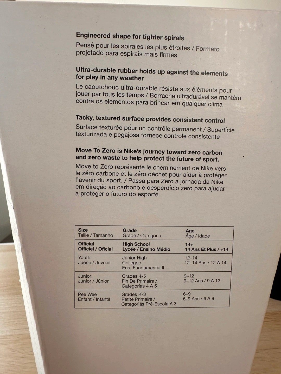 Selling a brand new Nike Playground football, still in its original box! It's designed for all-weather play with a tacky, textured surface for consistent control. The box indicates it's suitable for ages 14+.