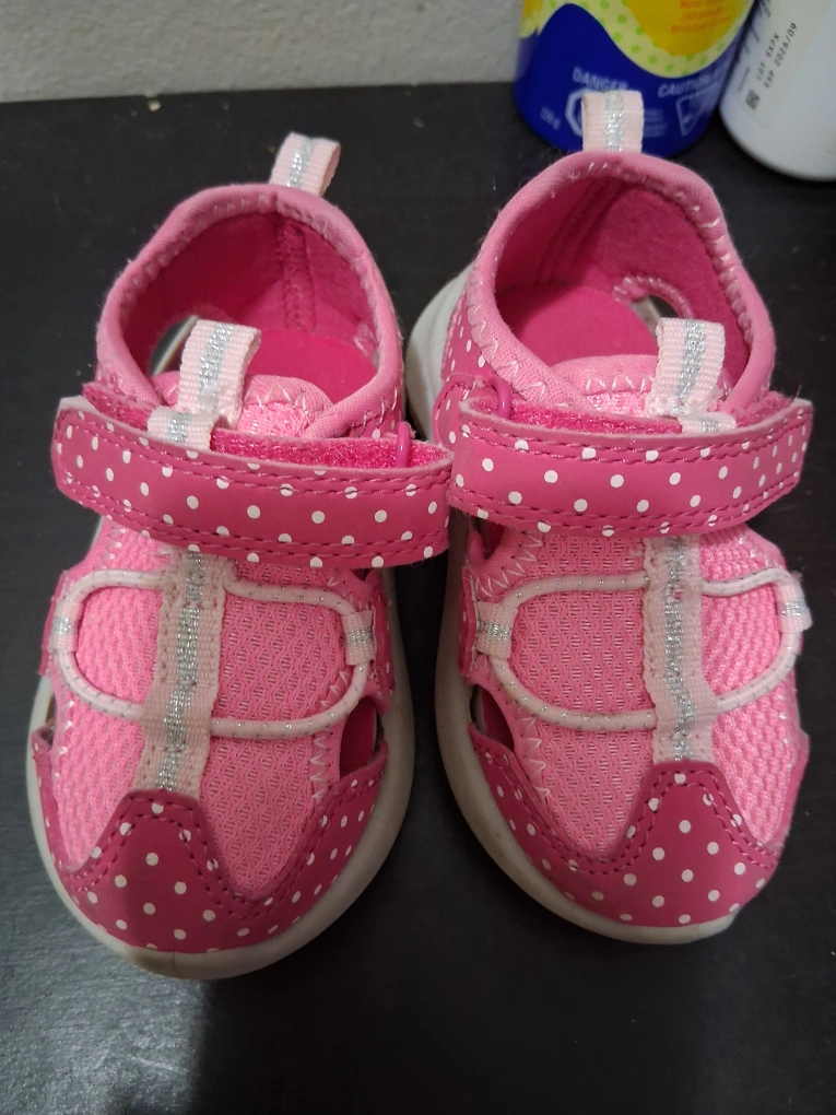 Cute pink sandals from Joe Fresh, perfect for your little one! These sandals are a size 4 and feature a fun polka dot pattern. They're in great condition and ready for new adventures. Pick up only, No delivery .