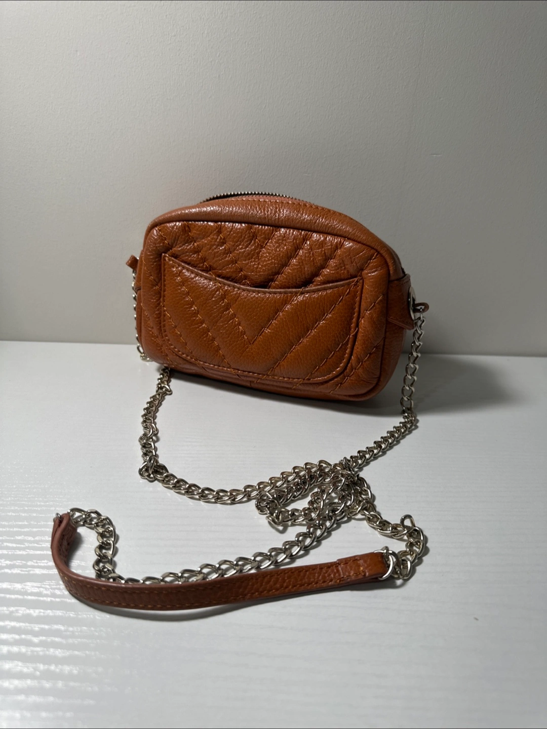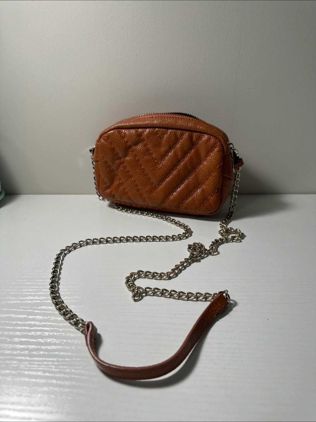 This Zenzdi crossbody bag is perfect for carrying your essentials! It features a stylish quilted design and a chain strap. The interior is lined with a lovely purple fabric. It's in great condition and ready for a new home!